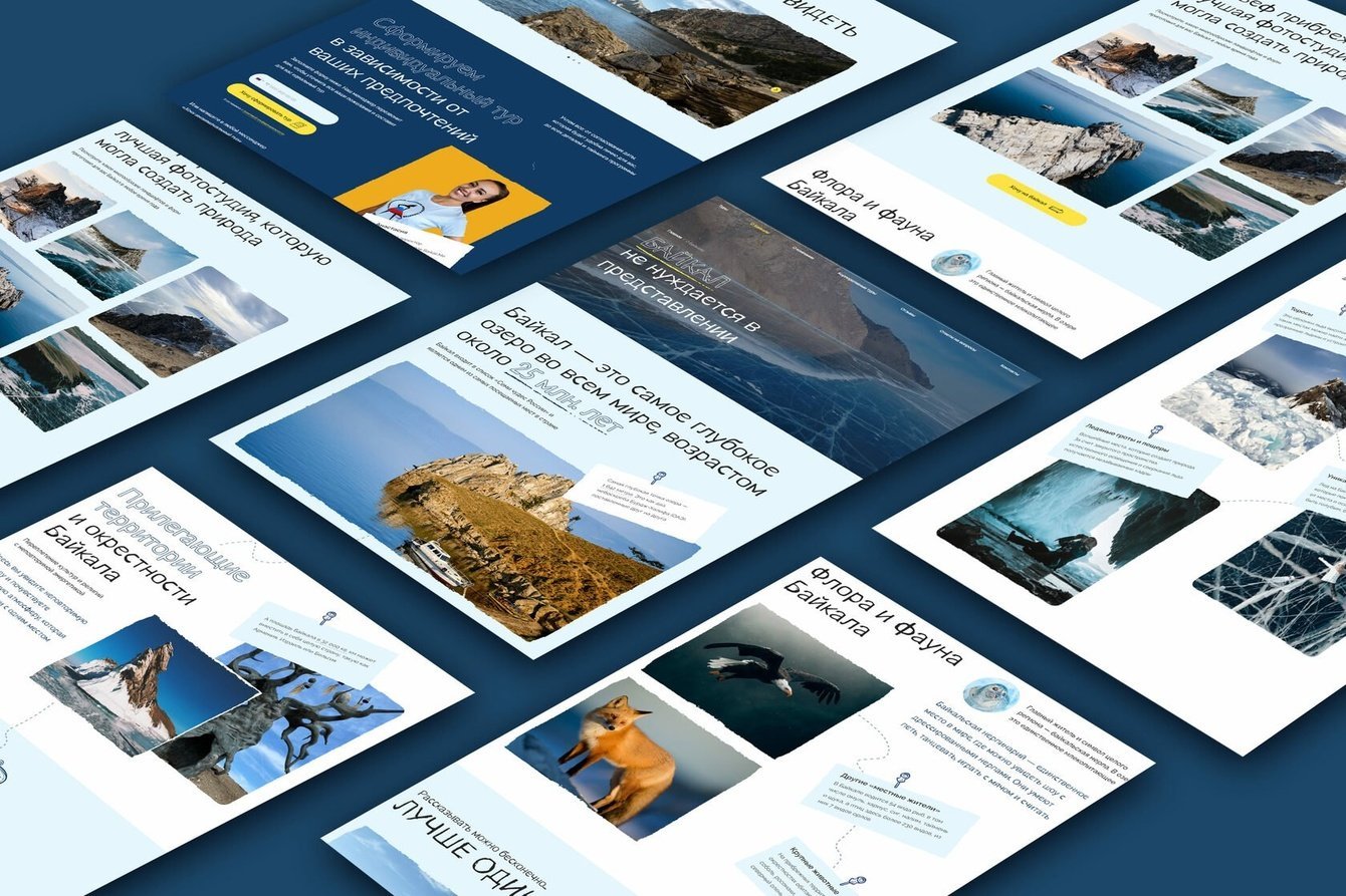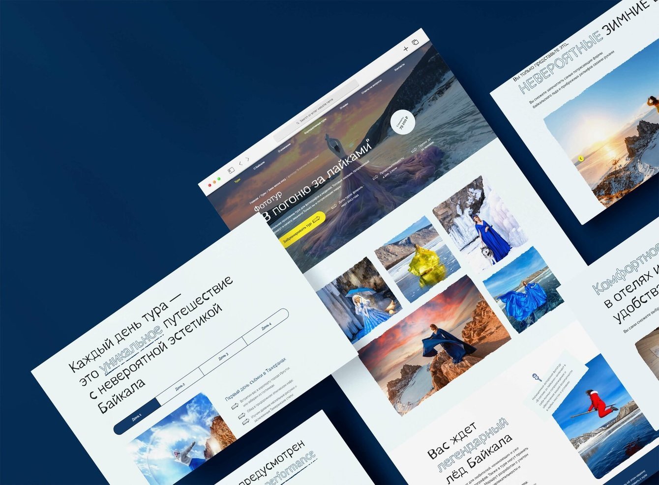 1. Создание конверсионного и уютного сайта турагентства на платформе Tilda. Нам требовалось разработать дизайн и структуру, которые привлекали бы клиентов и одновременно передавали атмосферу уникальных туров, предлагаемых на Байкале.