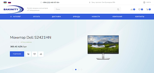 Лицензия 1С-Битрикс была не активна, сайт не обновлялся более трех лет, что влияло на безопасность самого сайта и данных пользователей. На сервере была старая версия РНР, которую требовалось обновить для корректного перехода на современный интернет магазин от Аспро. Кроме того, необходимо было сохранить функционал двух версий сайта, на русском и азербайджанском языках.