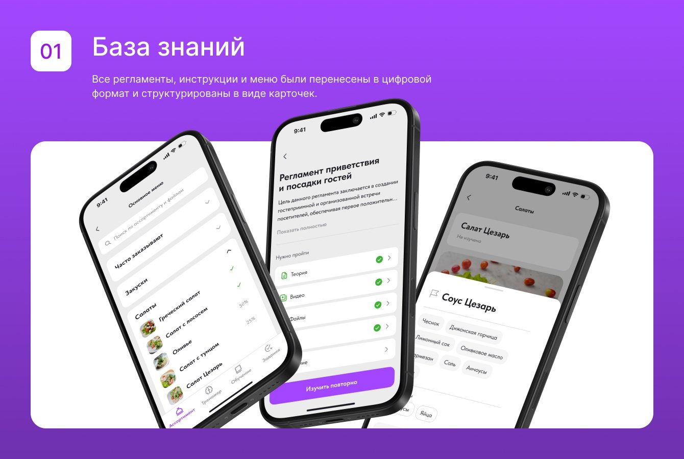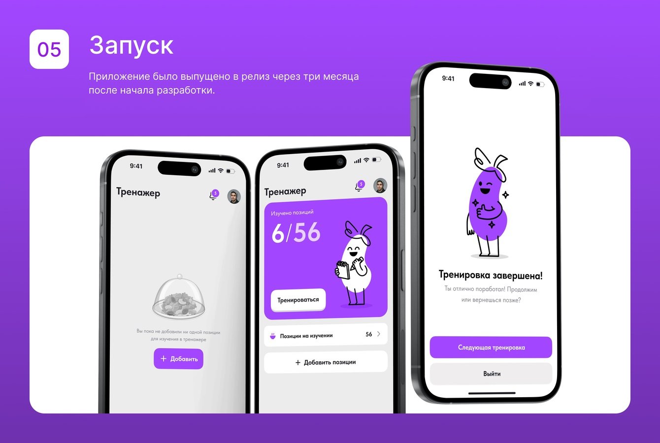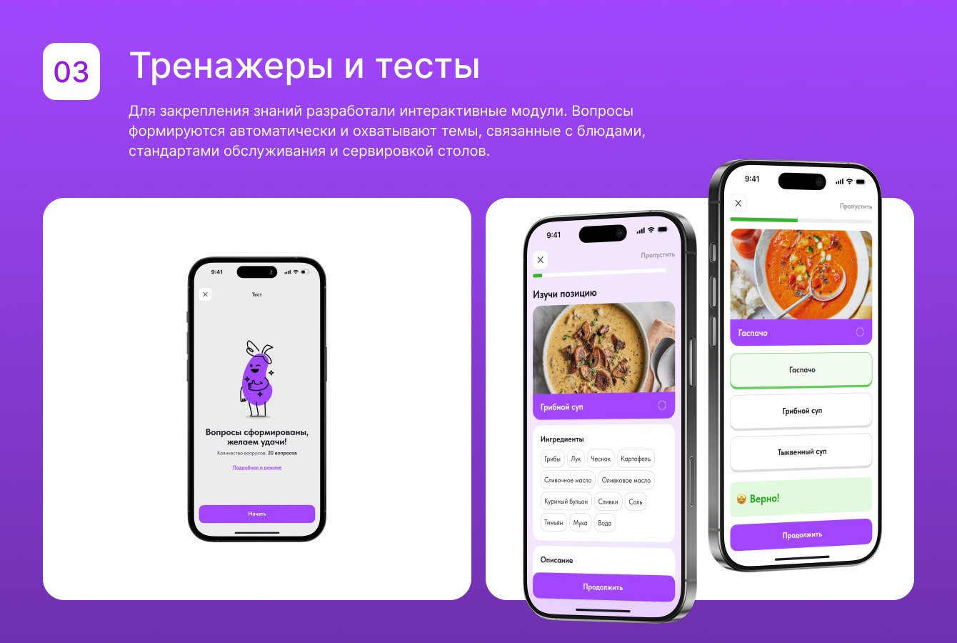 Главная сложность заключалась в объединении обучения и управления в одном приложении. Задумка была в том, что продукт SaaS-решение и подходит разным ресторанам.