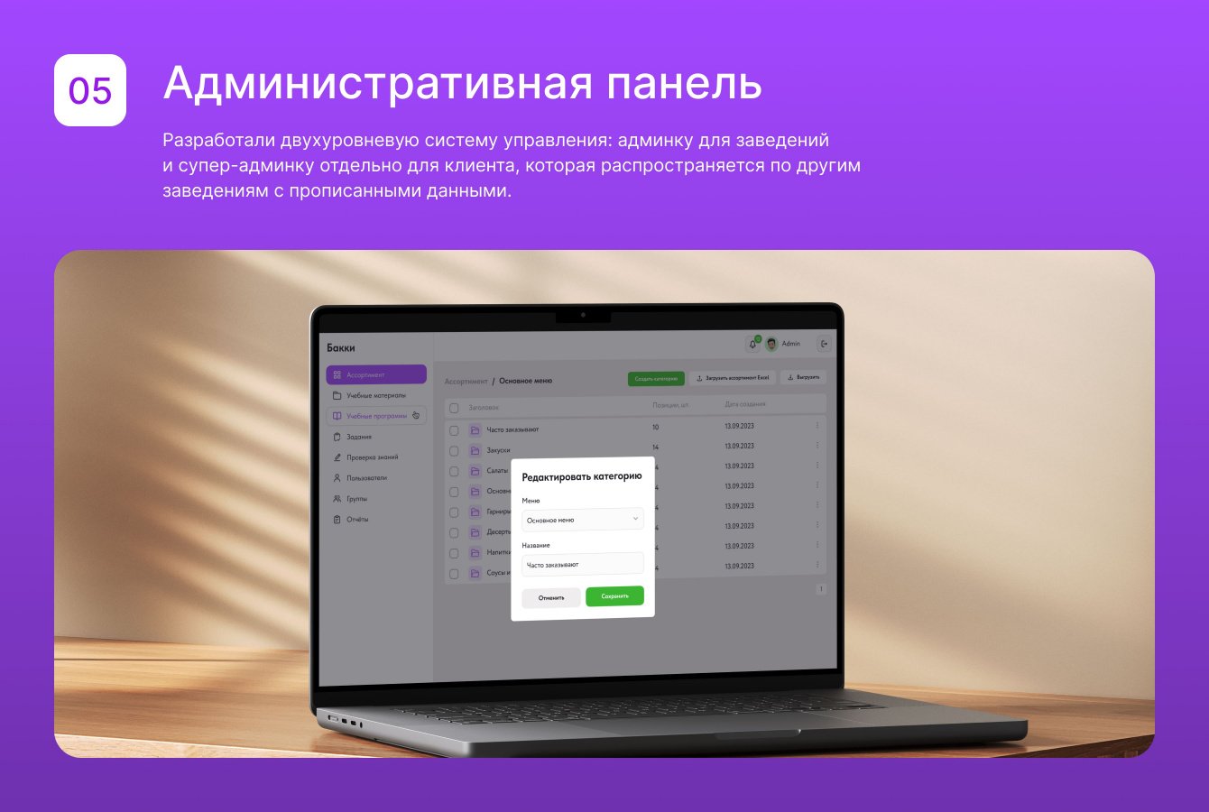— Удобство управления. Административная панель и супер-админка позволяют легко обновлять информацию и адаптировать приложение под нужды конкретного заведения.