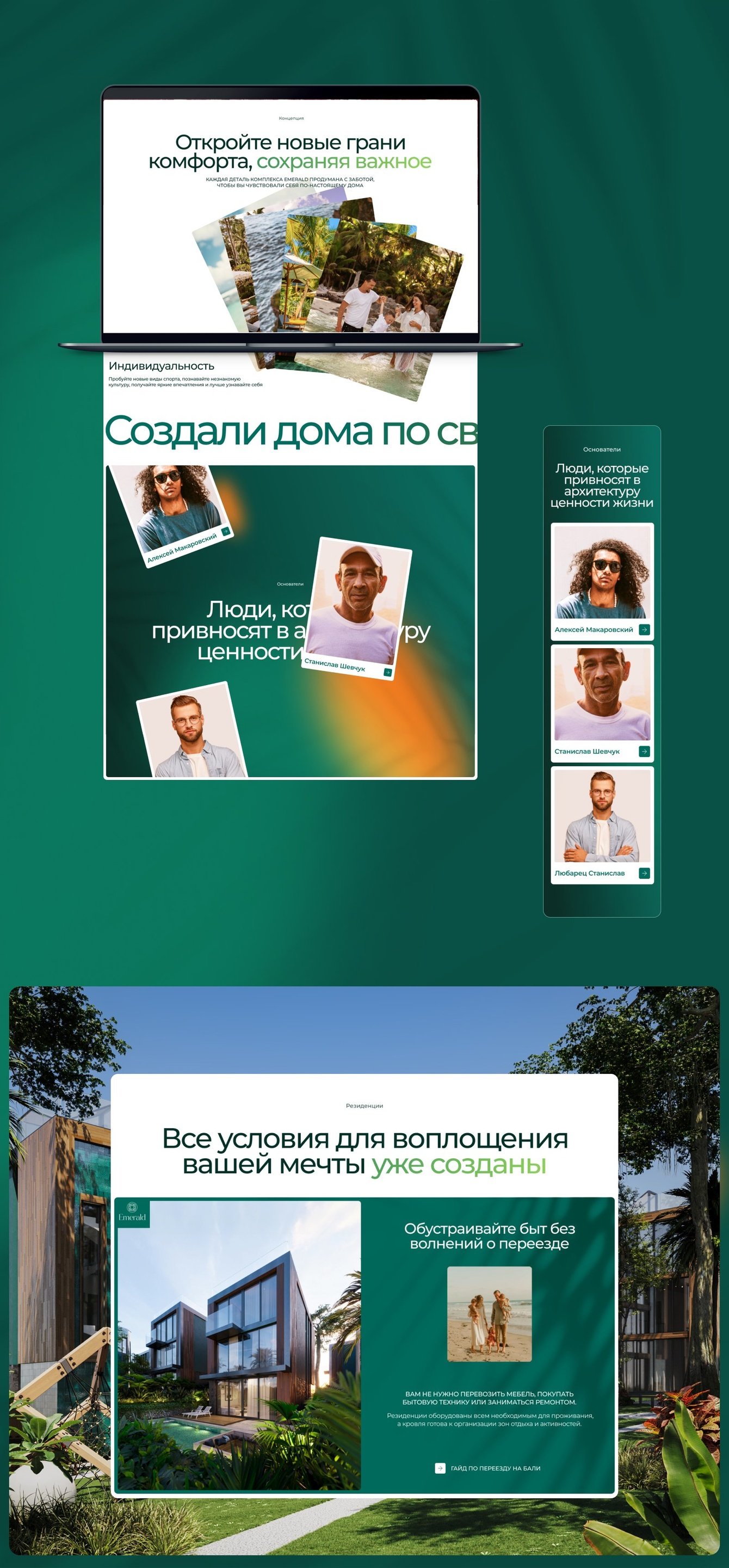 На дизайне у нас получилось передать местный колорит, премиальность уровня комплекса и главный посыл, что Бали — это тот уголок Земли, которому можно доверить заботу о самом главном в жизни, о семье.