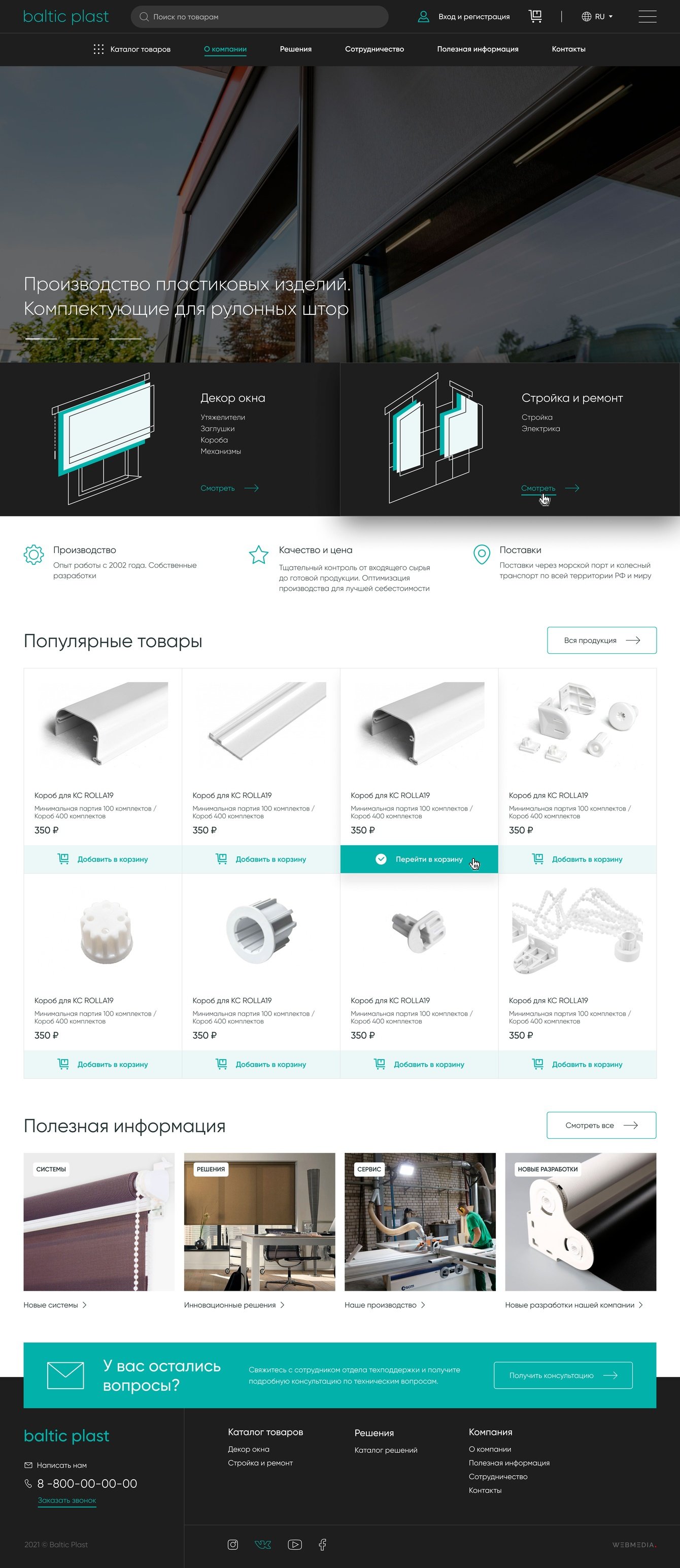 Обеспечить заказчиков (юридических лиц) возможность заказывать пластиковые комплектующие для производства рулонных штор в интернет магазине в необходимом количестве.