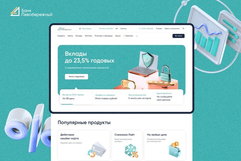 Левобережный — новосибирский банк с многолетней историей. Работаем с заказчиком больше семи лет. В 2017 году разработали предыдущую версию сайта и затем планомерно занимались его продвижением в поисковой выдаче.