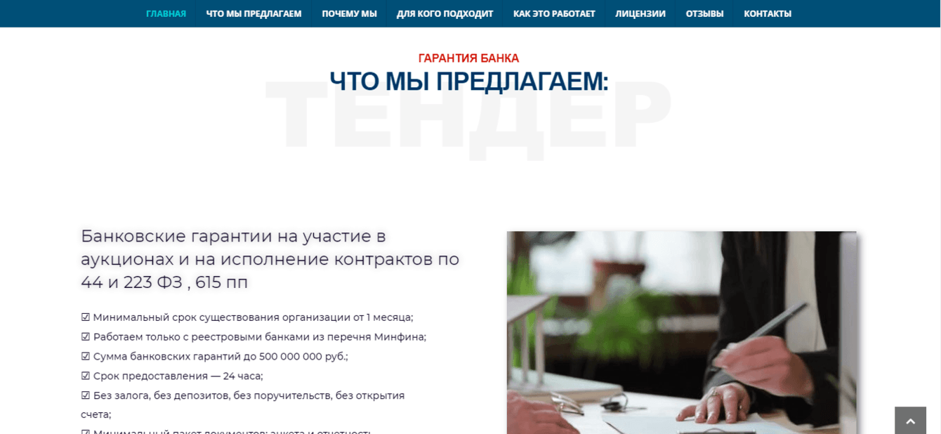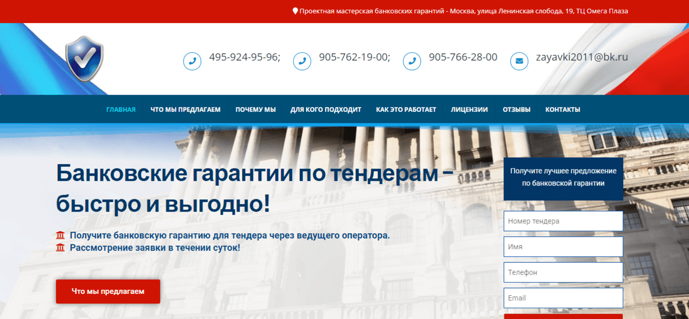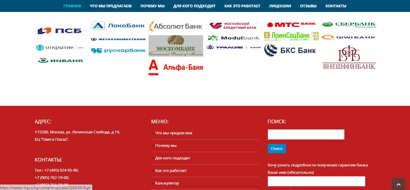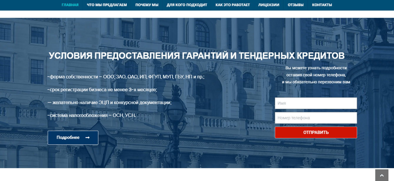 Поступила заявка на сайт для компании, выдающей банковские гарантии. Попросили строгий, оптимальный сайт по стилистики российских символов. Заявлен был калькулятор расчёта. Проект реализован в полном объёме.
