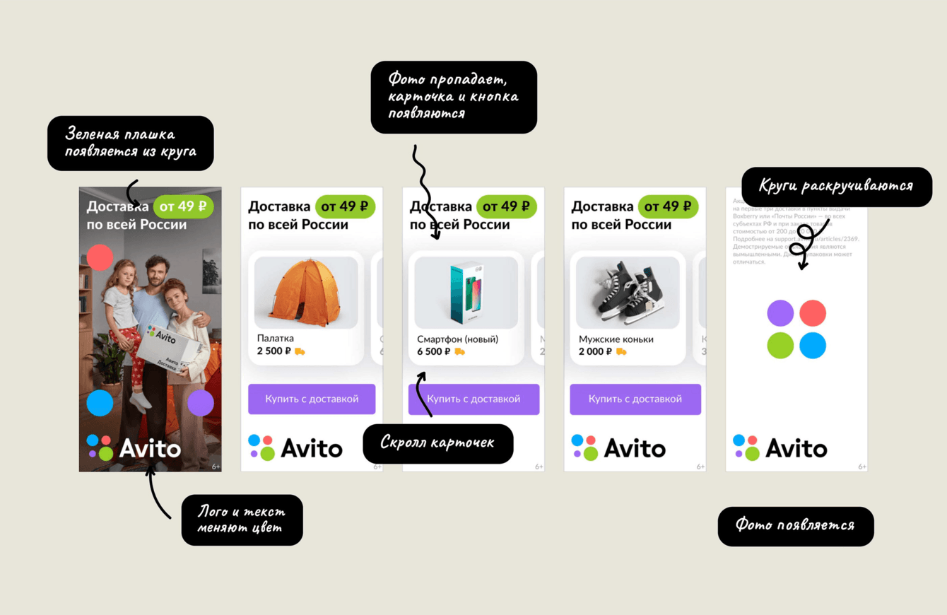 Утверждаем раскадровки и анимацию с ребятами из Авито и переходим к адаптации анимации под остальные размеры.