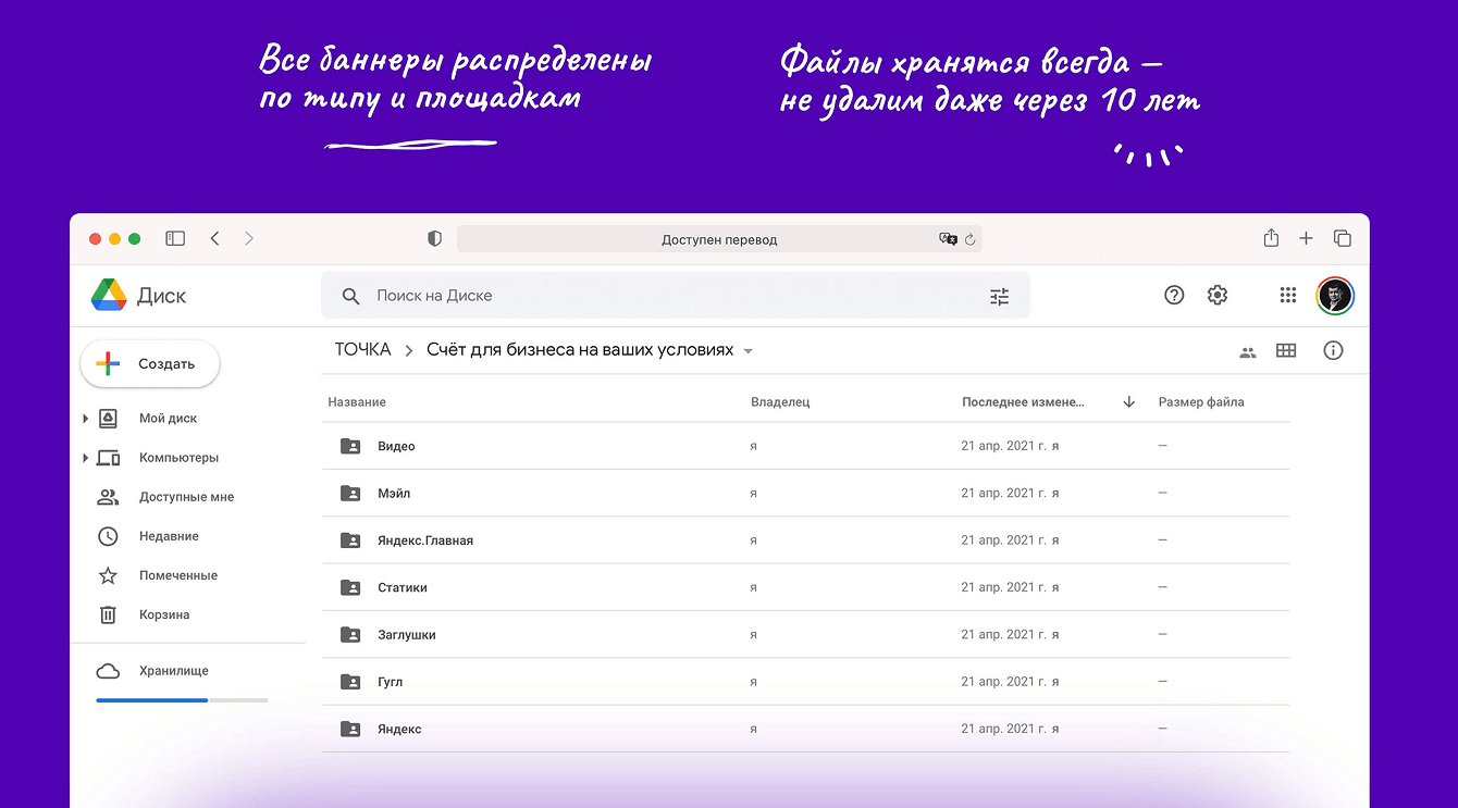 А также мы храним все исходники и материалы проектов, чтобы всегда можно было вернуться к хорошим решениям, или подготовить обновленную версию баннеров.