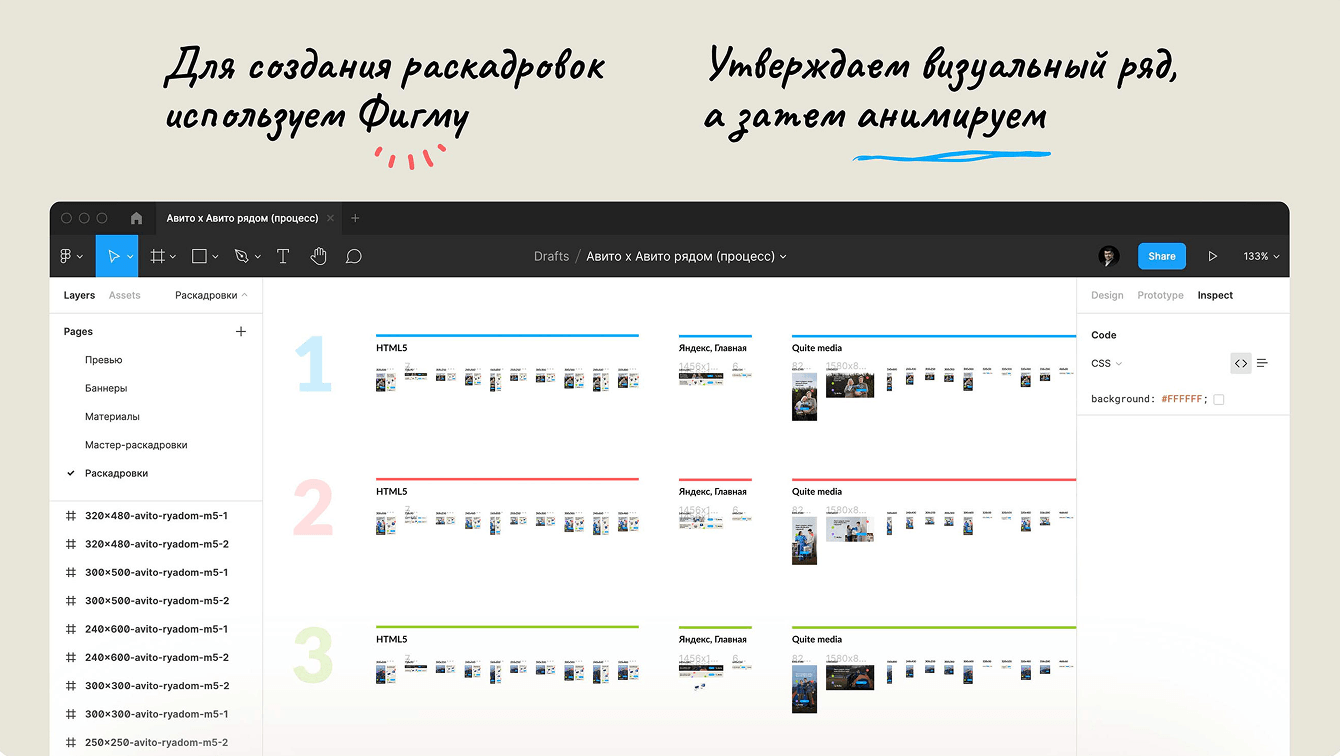 Утвержденные раскадровки служат опорой для анимации. Когда известно как выглядят кнопка, заголовок, фотография в каждом — этап анимации ускоряется в разы. Это особенно нужно, когда у компании есть собственные гайды, которые важно учесть.