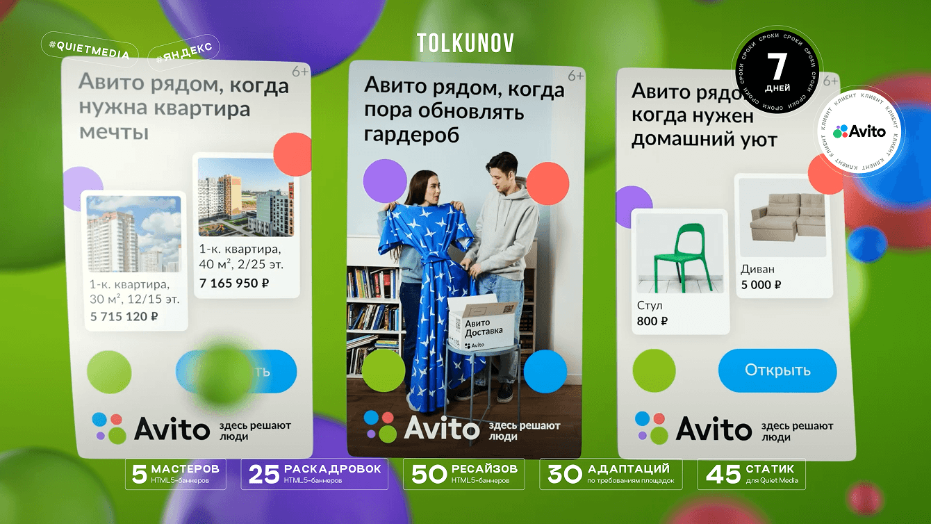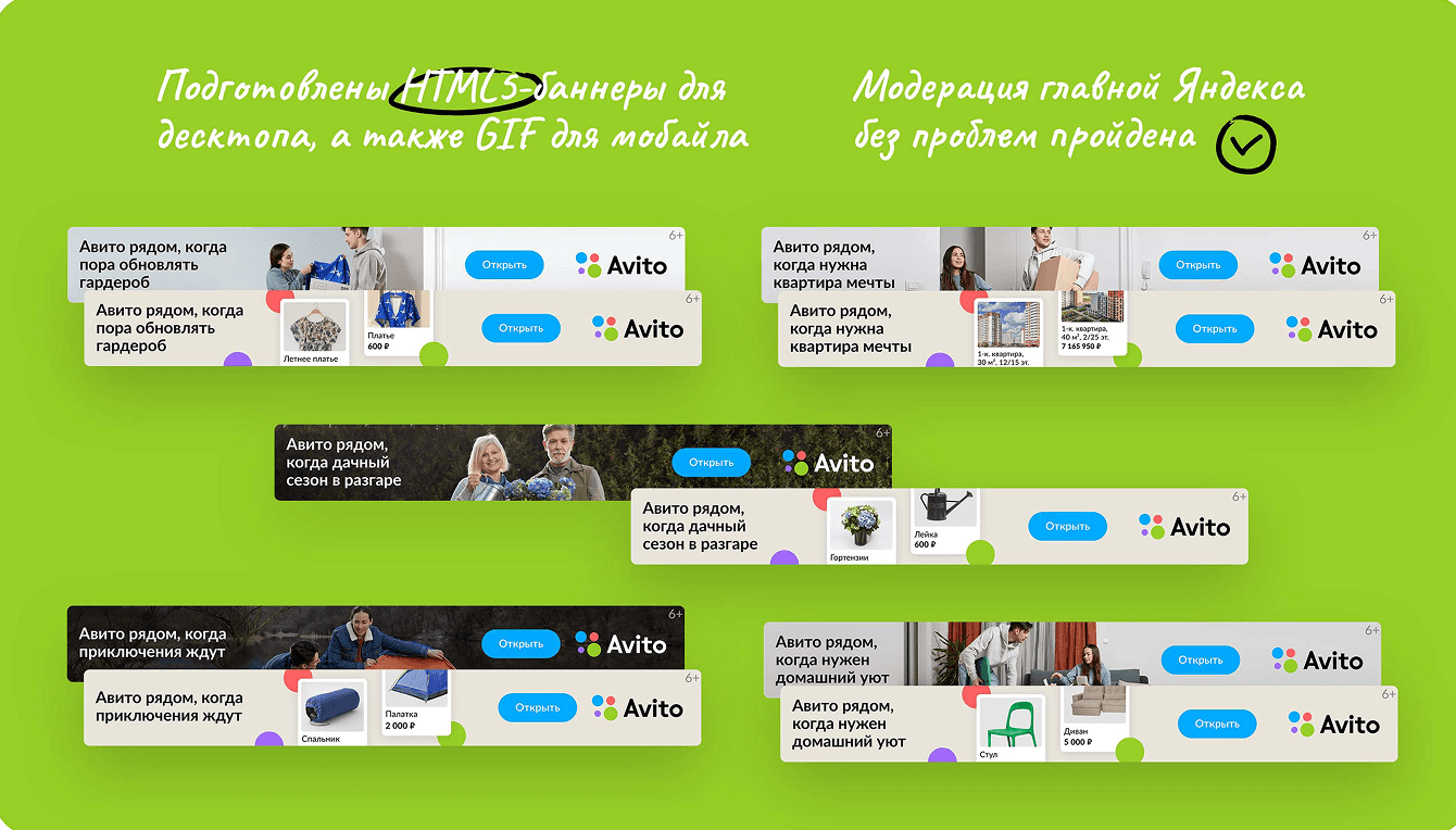 Идея баннеров классная — показываем обычную жизненную ситуацию на первом кадре, а уже на втором как Авито может помочь. Идеально.