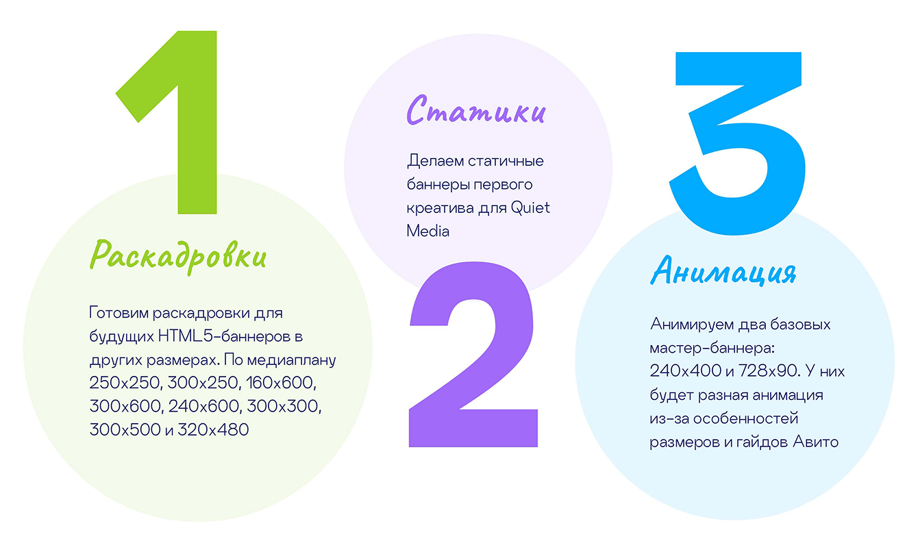 Это далеко не первый наш проект с Авито, поэтому мы быстро, но с вниманием к деталям собираем две структуры анимации. Проверяем все замедления, появления и время отображения каждого кадра. И утверждаем без правок.