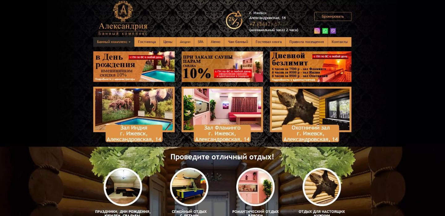 Привлечение целевой аудитории, увеличение заявок и укрепление позиций в своей нише с помощью создания и продвижения сайта для банного комплекса «Александрия».
