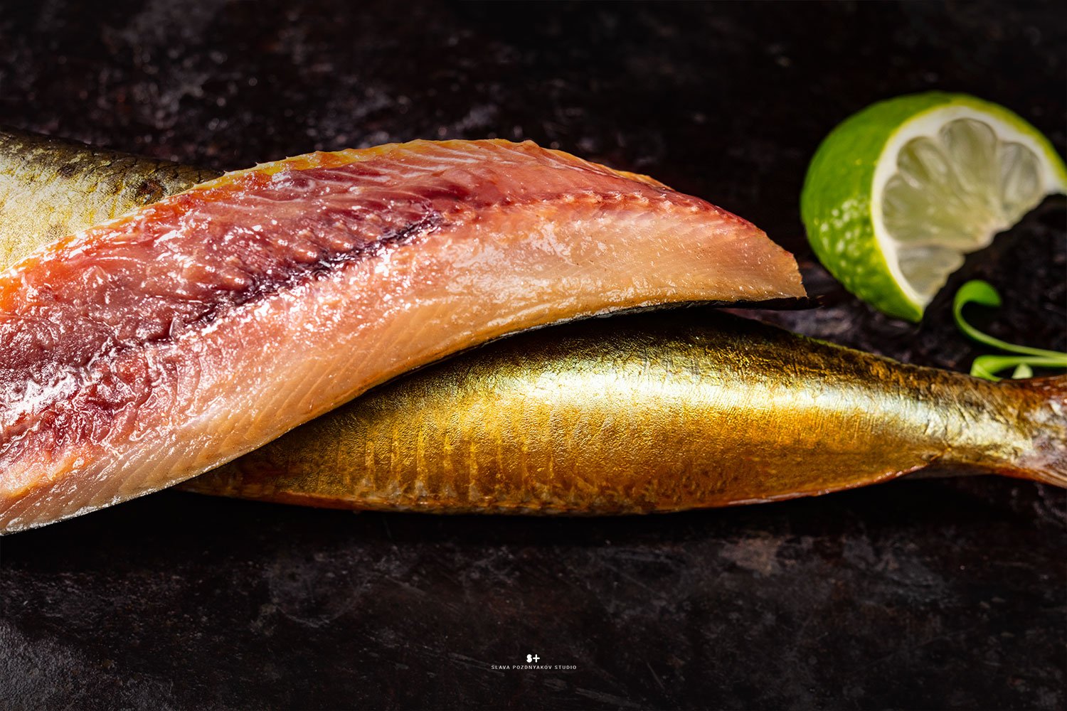 Для фотосъемки продукта я выстроил правильное освещение, чтобы рыба выглядела ярко и аппетитно. Подобрал фон, который гармонировал с каждым продуктом и не отвлекал внимание от основного объекта съёмки. Рыбу расположил так, чтобы она занимала центральное место на упаковке. Нашел наиболее удачный ракурс, чтобы кусочек рыбы выглядел аппетитно. Учёл размер и формат упаковки при выборе ракурса и композиции. Для небольших упаковок выбрал крупный план.