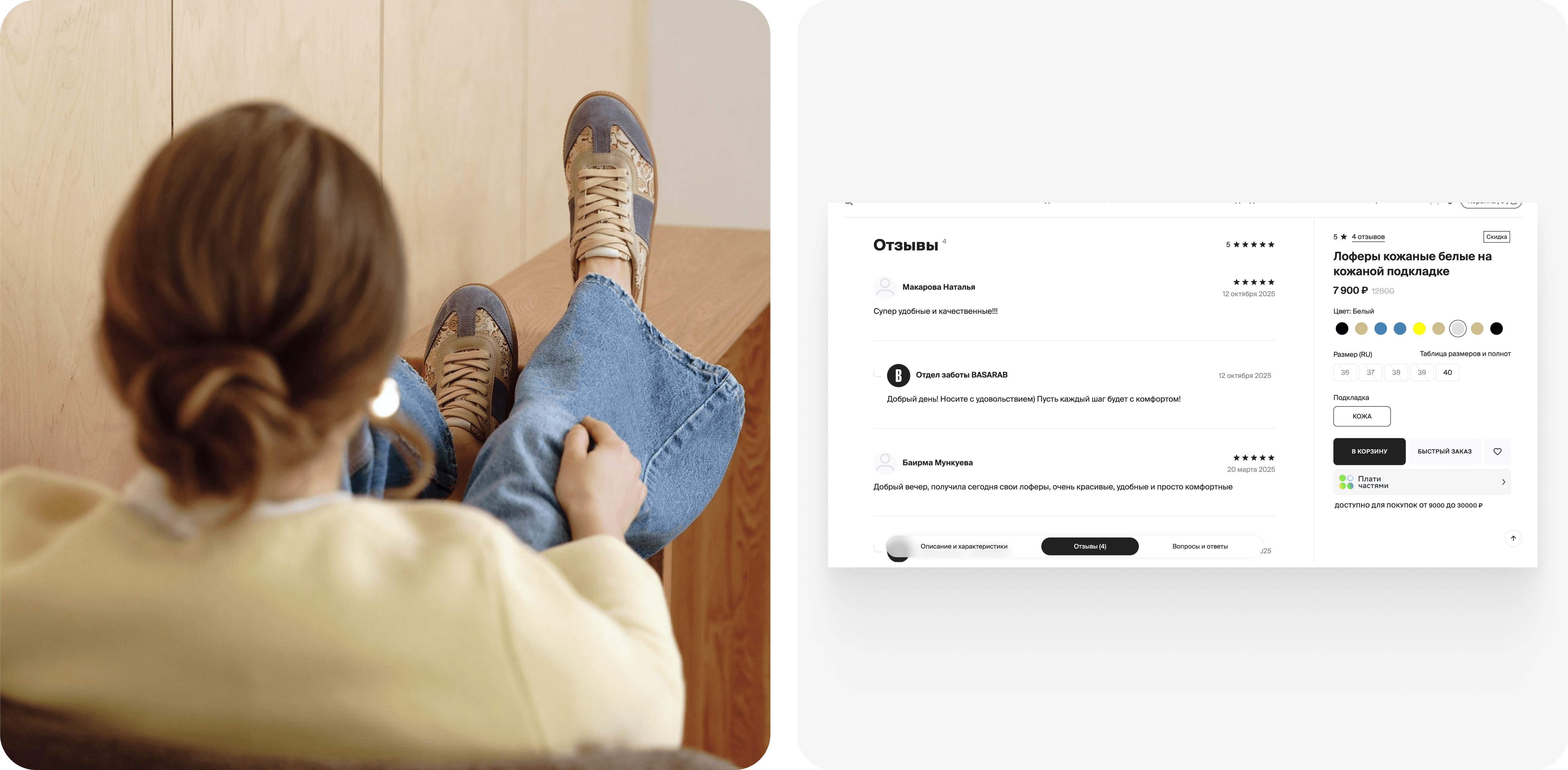 Мы с нуля разработали систему публикации отзывов и выстроили правильную логику работы этого блока. Чтобы заказчик не зависел от нашей команды разработчиков, все данные зафиксировали в инструкции. В итоге клиенту понравилась концепция, и далее он попросил доработать этот блок. Теперь на сайте BASARAB предусмотрена возможность поиска обуви и одежды по оставленным отзывам. Также появилось поле для ответов, которые мог оставлять администратор.