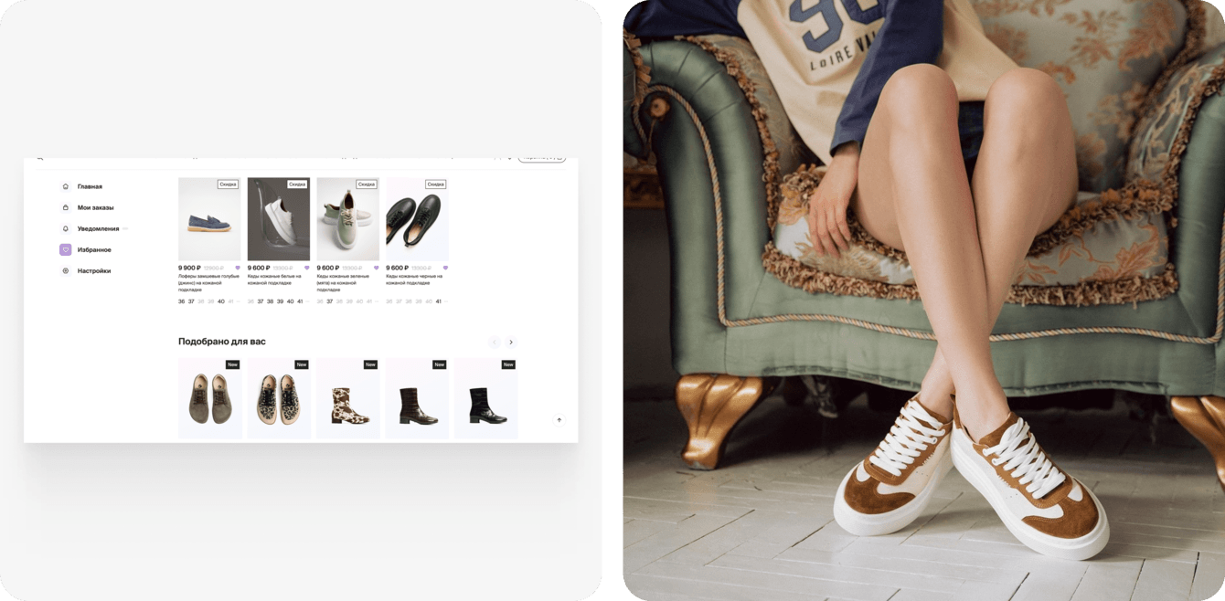 Для заказчика опция «Избранное» была важна: во-первых, благодаря этому блоку можно отслеживать конверсии. Во-вторых, после многочасовых скитаний по сайту и подбора обуви, одежды пользователь устает. И, если он не найдет то, что искал и откладывал в избранное, это может разочаровать его. Он просто закроет сайт и пойдет искать подходящие товары у конкурентов.