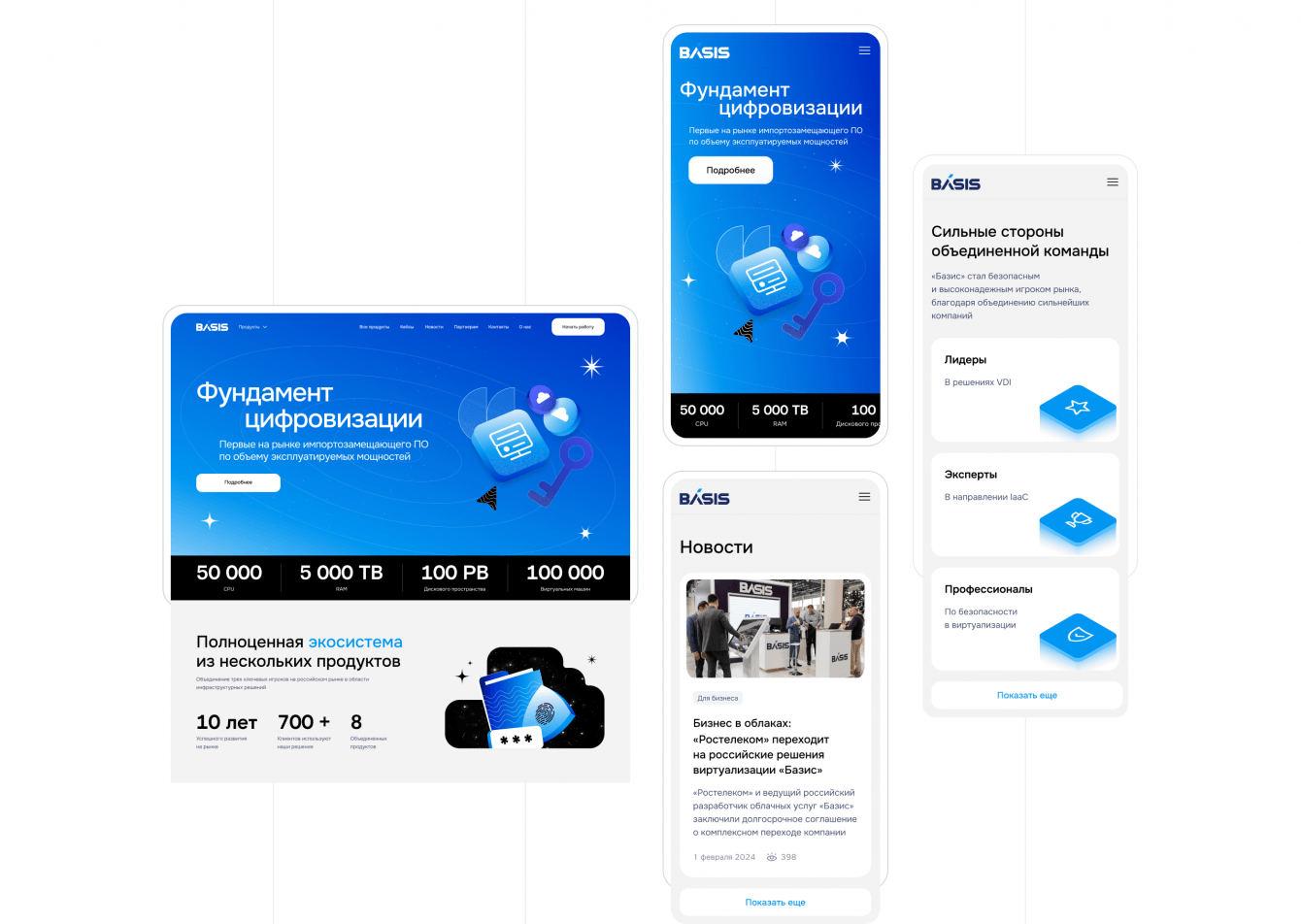 В процессе пересмотра дизайна, мы стремились сделать его более привлекательным и акцентировать внимание пользователей на продукции Basis.