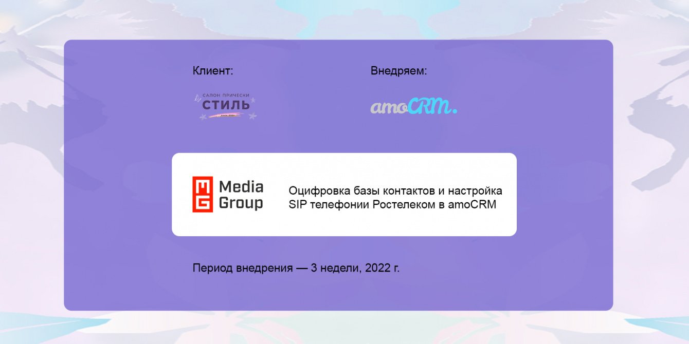 Клиент обратился за оцифровкой базы постоянных клиентов, выбрав инструмент для решения этой задачи - amoCRM.