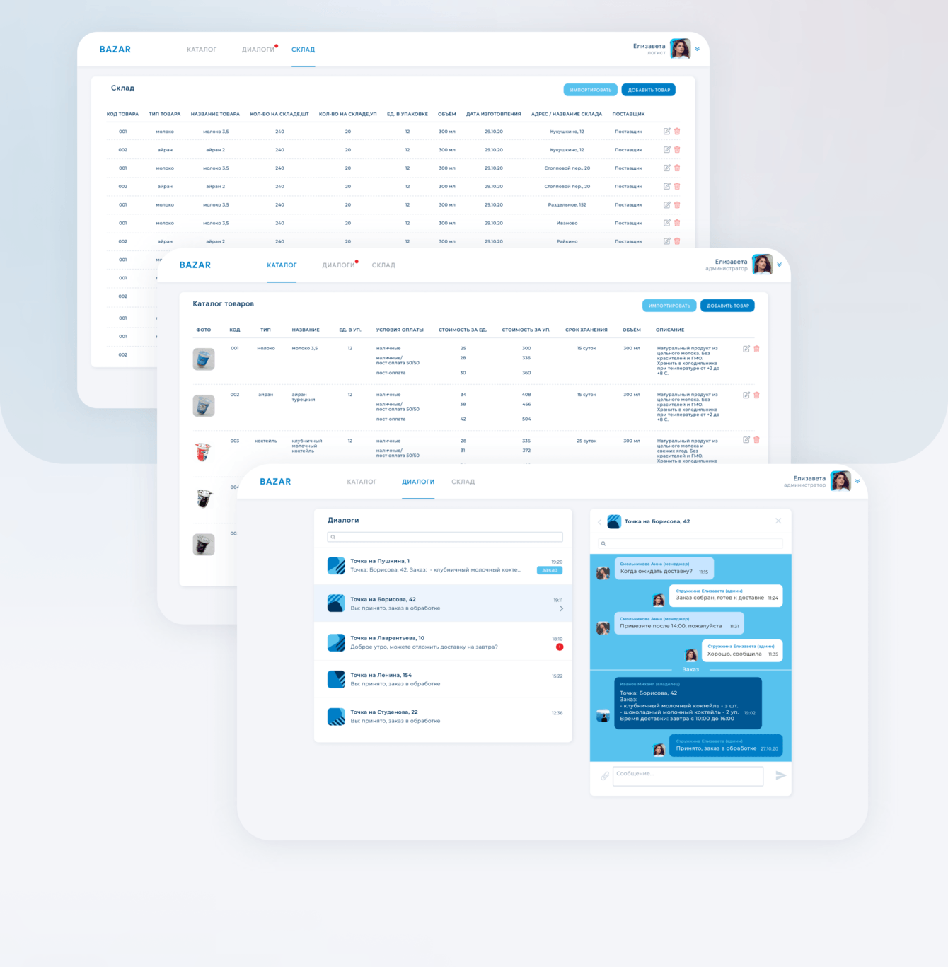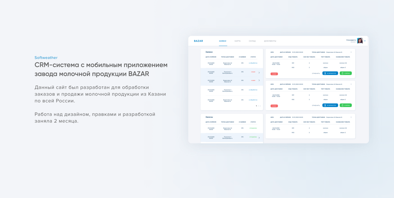 Производитель молочной продукции в Казани обратился к нам с задачей разработать оптимизированную систему управления бизнесом с возможностью контролировать статус заказов, поставок и товаров.