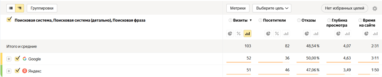 Настроены инструменты аналитики (Google Analytics, Яндекс.Метрика).