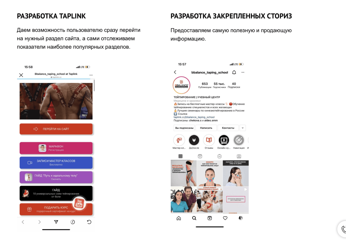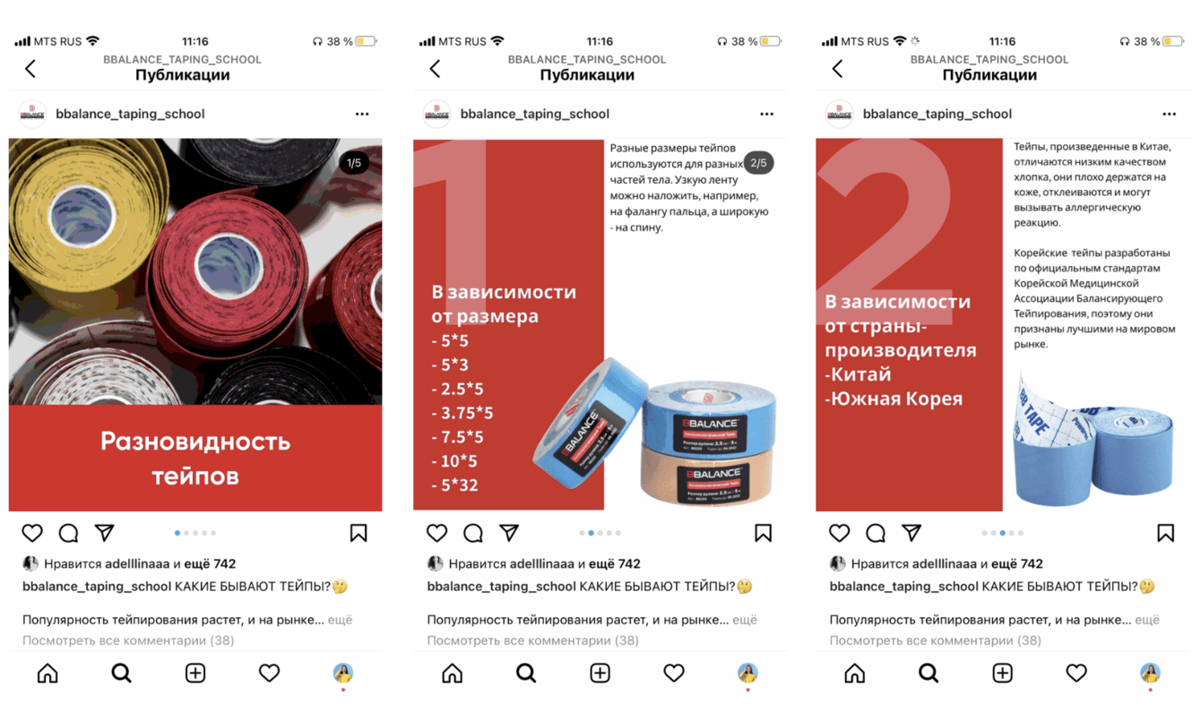 Полностью разрабатывали новую дизайн-концепцию постов, закрепленных сториз, каруселей, материалов, так как аккаунт до был не конкурентноспособным. При этом постарались сохранить живой стиль ленты.
