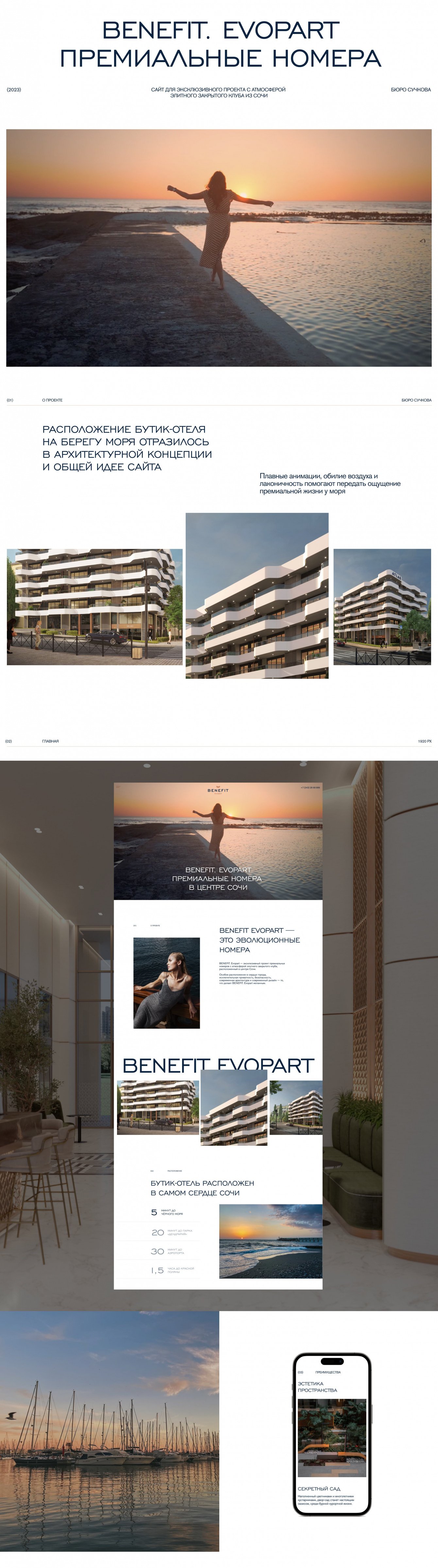 Застройщику нужен был сайт для уникального проекта в Сочи — эволюционных апартаментов Benefit Evopart. Это приватное жилье премиум класса — всего 50 лотов.