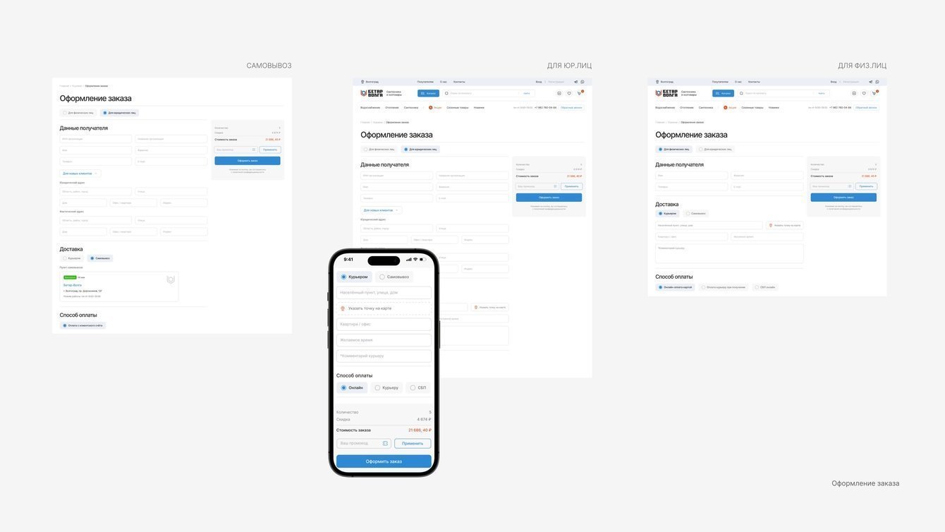 Так как разрабатывался одновременно b2bи b2c проект есть страница оформления как для юридических лиц, так и для физических.