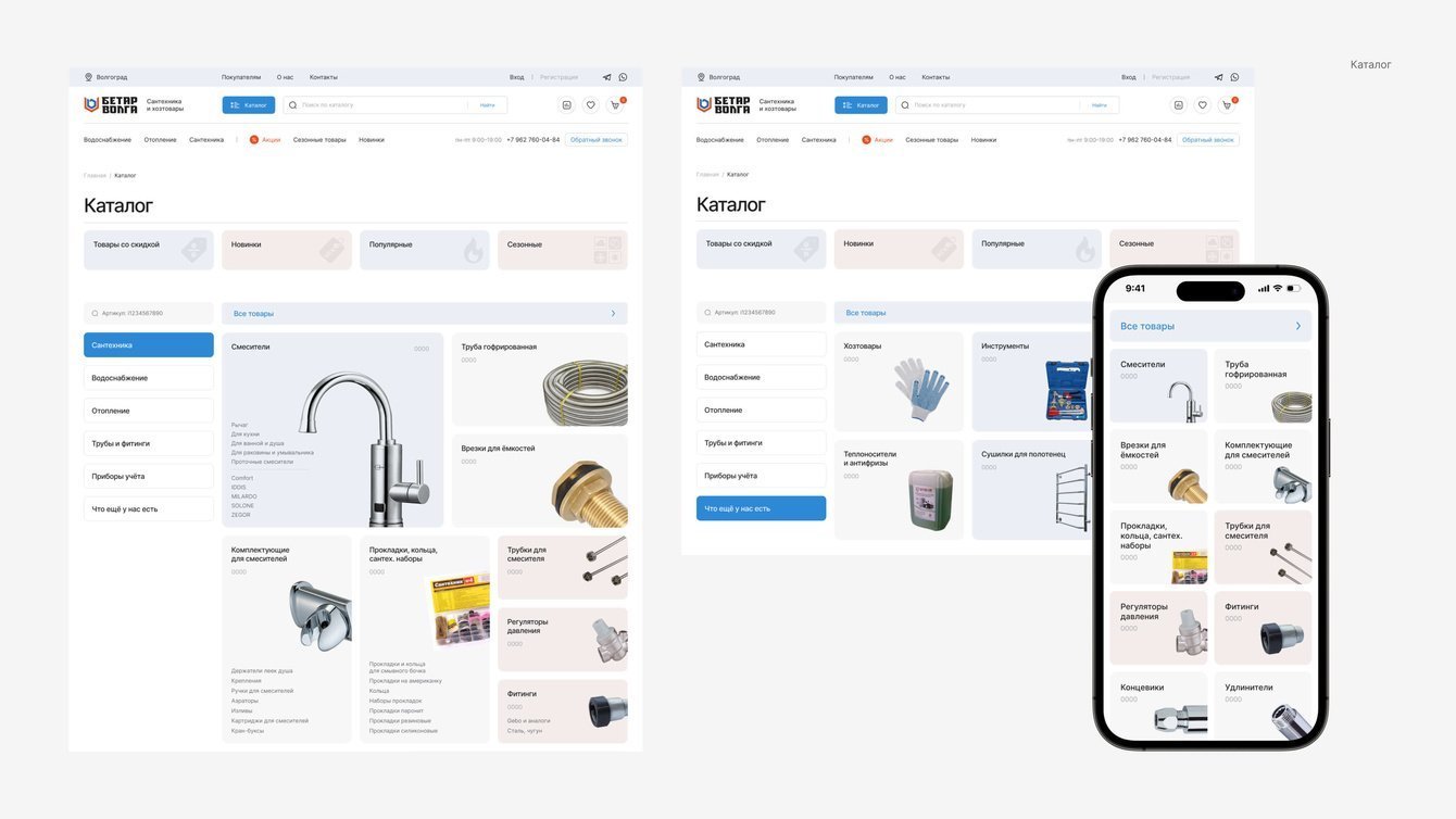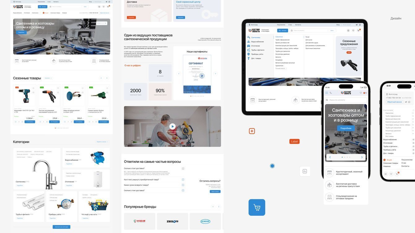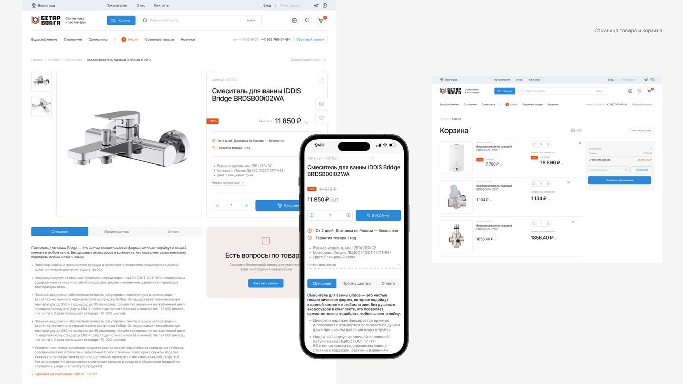 Бетар Волга – компания, специализирующаяся на продаже сантехники и хозтоваров. Целевые группы посетителей – как частные клиенты, оптовые закупщики так и крупные компании. До этого у клиента уже был интернет-магазин, но ему требовался редизайн и более продуманная логика. Хотелось создать новый сайт с проработанным функционалом, который сведет к минимуму количество брошенных корзин.
