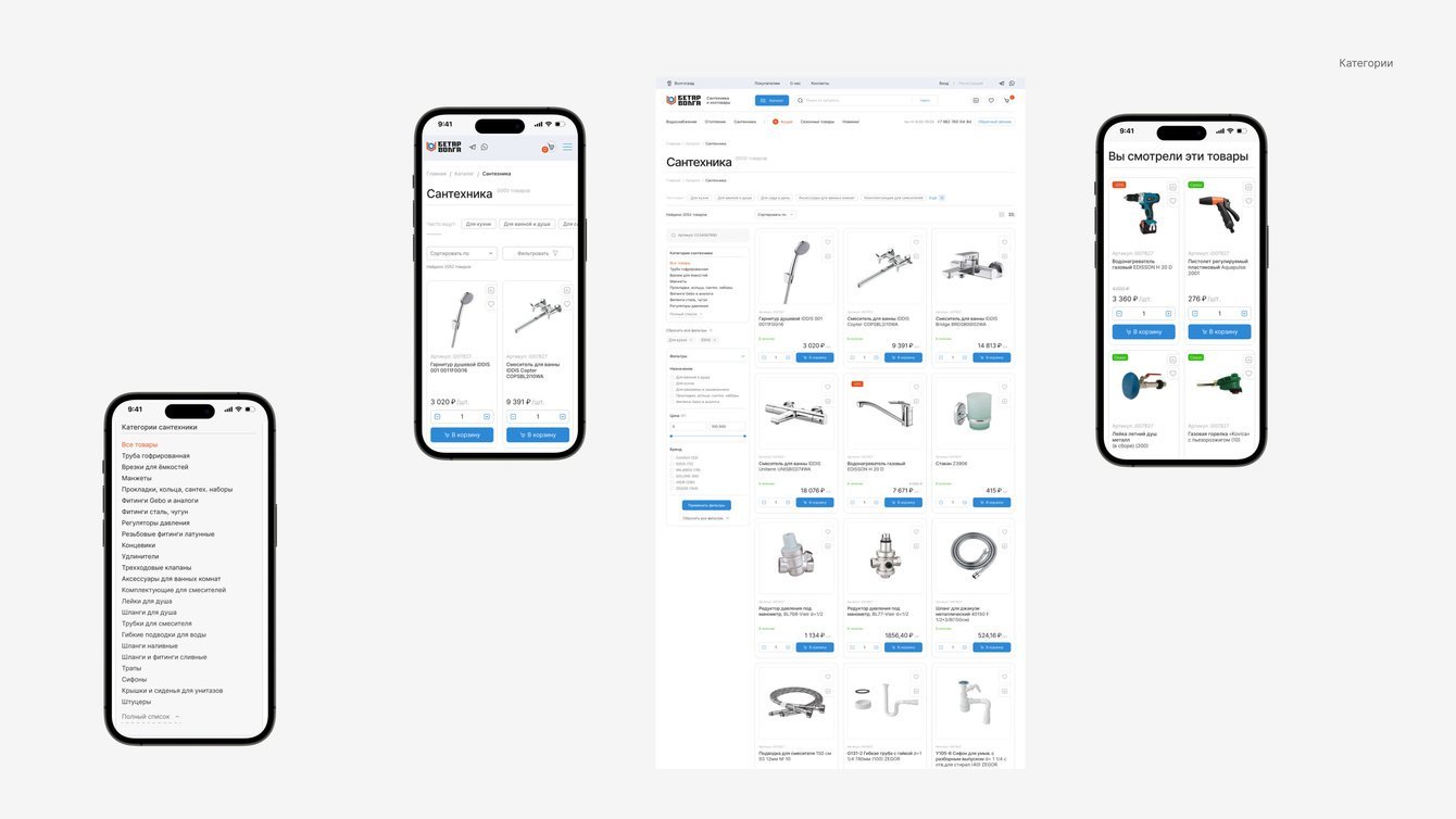 Пользовательский путь начинается с поиска товаров. В первую очередь нужно обеспечить клиентов удобным и хорошо структурированным каталогом. У компании разные целевые группы посетителей: продумывали каталог, чтобы путь по нему был удобен как для профессионалов, так и для тех, кто не разбирается в теме.