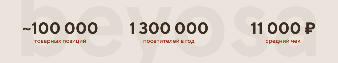 — увеличение количества посетителей до 1,3 миллионов за год, онлайн-продаж и повышение средней стоимости заказа до 11000 рублей;
