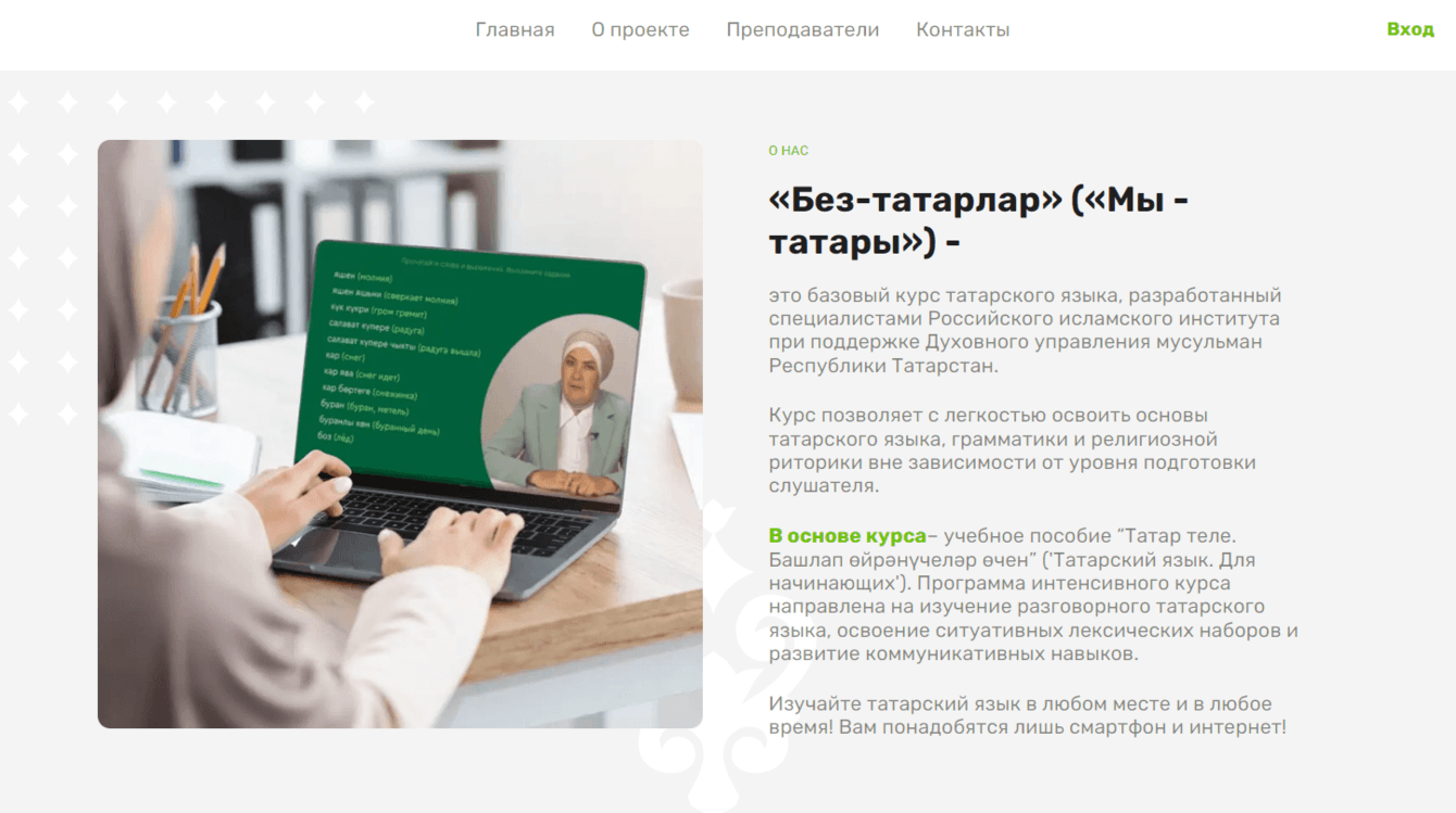 Курс позволяет с легкостью освоить основы татарского языка, грамматики и религиозной риторики вне зависимости от уровня подготовки слушателя. Теперь можно изучать татарский язык в любом месте и в любое время! Понадобятся лишь смартфон и интернет!