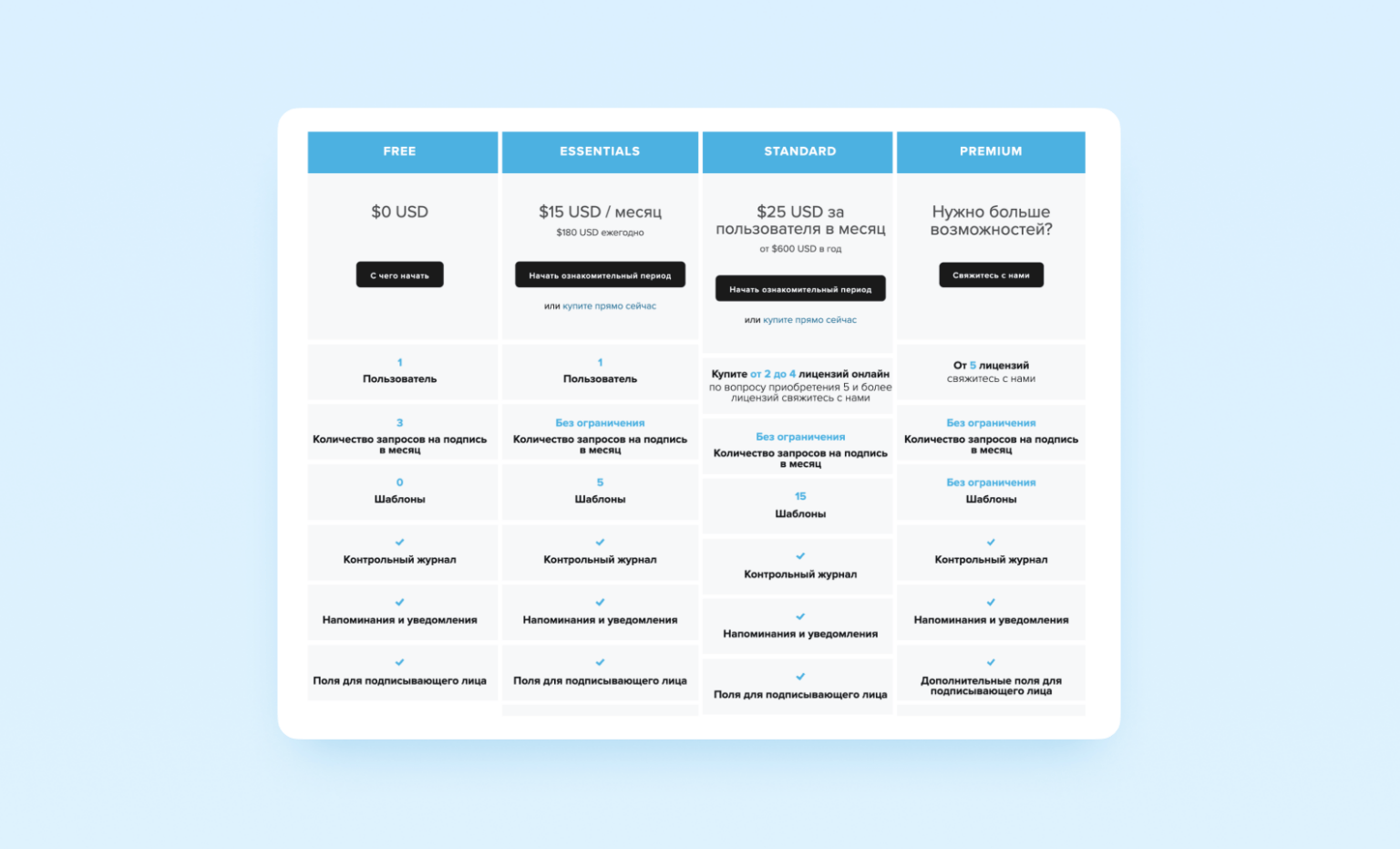 Начали с анализа конкурентов, смотрели, чем они пользуются для легализации подписей. Присмотрелись к четырем сервисам: