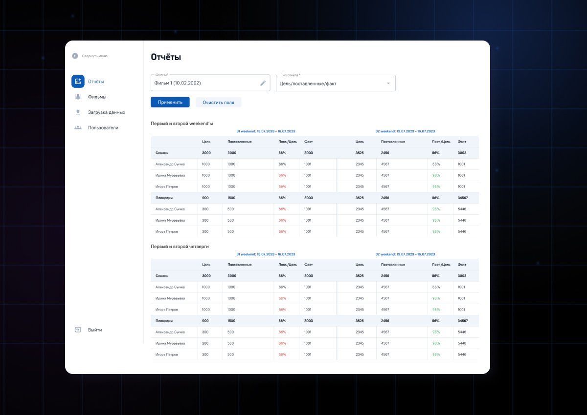 Мы разработали BI-платформу с автоматическим сбором данных о кинопоказах, кассовых сборах и посещаемости. Реализована регулярная синхронизация с ЕАИС, гибкая отчётность с фильтрацией по фильмам, кинотеатрам и регионам, экспорт в Excel и PDF. Для работы с разнородными данными ЕАИС разработан кастомный парсер и механизм ежечасной синхронизации.