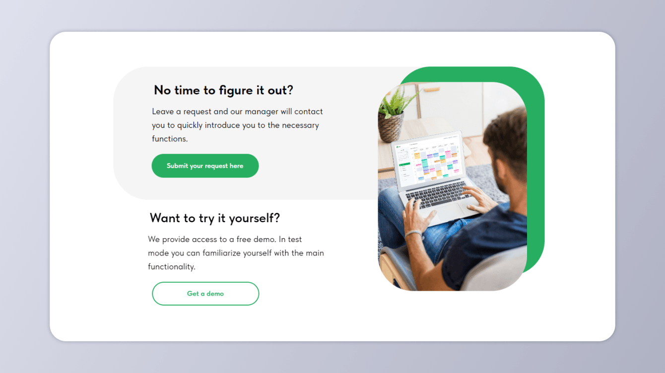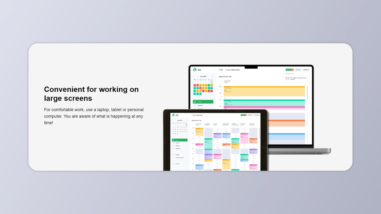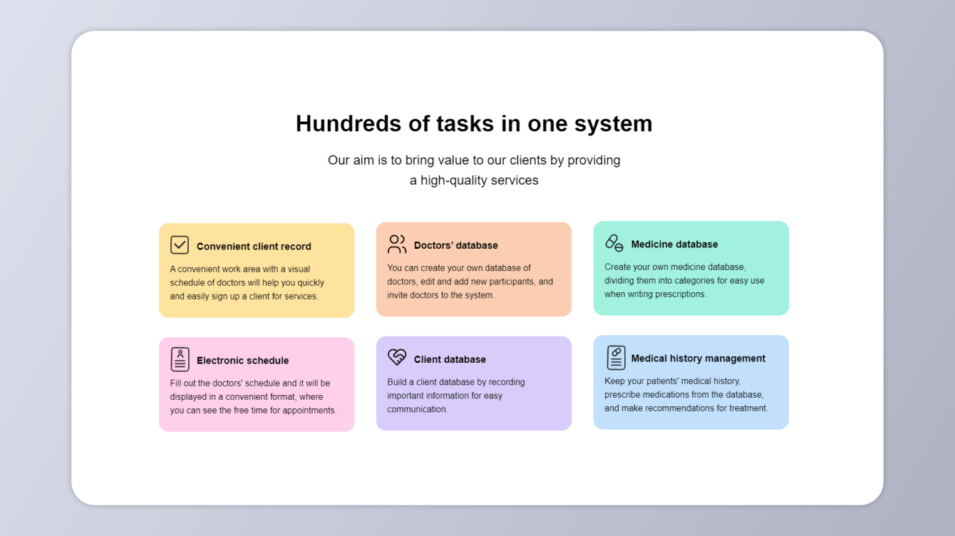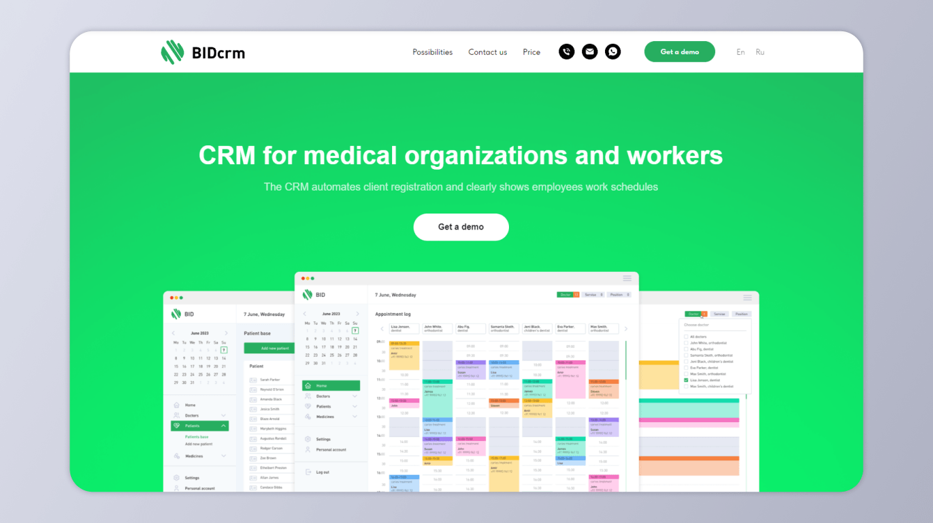 В результате нашей работы над проектом по разработке CRM для медицинских организаций, было создано полноценное программное решение, которое позволяет эффективно взаимодействовать с пациентами, управлять расписанием и обеспечивать учет медикаментов. Мы также разработали лендинг, представляющий данную продукт и предоставляющий подробную информацию о его возможностях и преимуществах, что позволяет клиентам получить всю необходимую информацию о продукте.