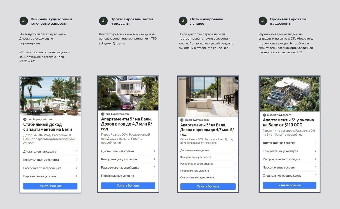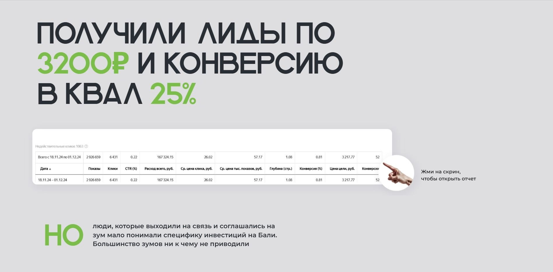 Нам удалось привлечь потенциального клиента, заинтересованного в инвестициях именно в островную недвижимость, осведомленного об особенностях, рисках и потенциальной прибыльности данного вида активов.