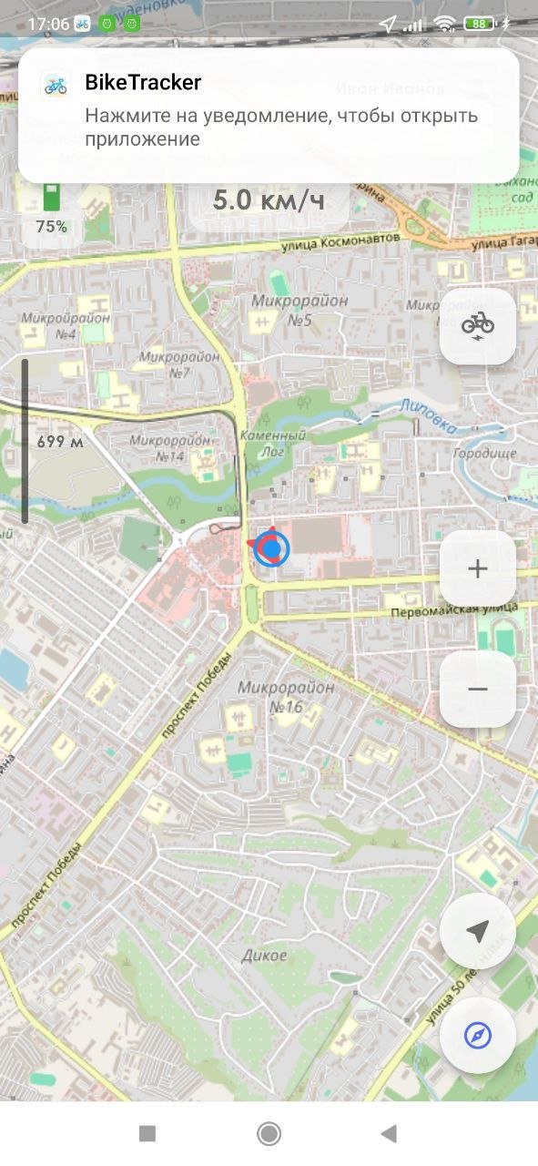 2) отслеживание текущего местоположения велосипеда относительно местоположения пользователя;