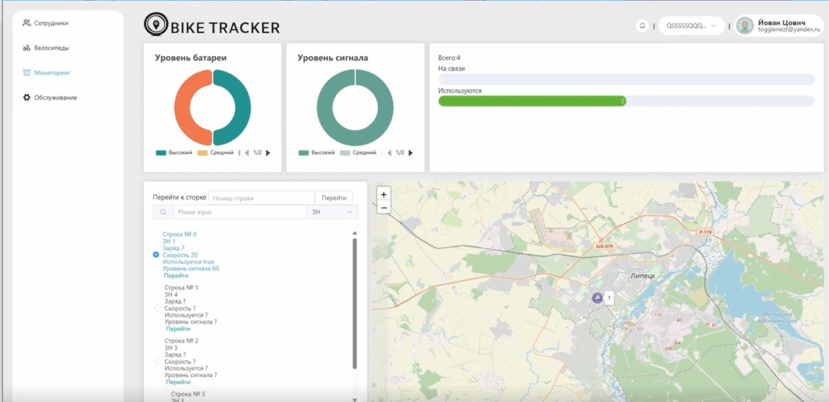 Инновационная система мониторинга и управления велосипедным парком в реальном времени. Решение обеспечивает точное отслеживание местоположения, контроль состояния и удаленное управление велосипедами через web-интерфейс. Система включает расширенную аналитику использования и предиктивную диагностику.