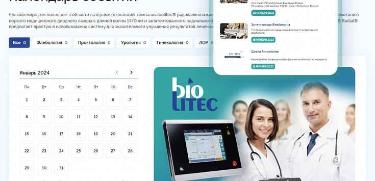 Биолитек - корпоративный сайт медтехники с витриной представителя компании Biolitec AG в России - производителя медицинского лазерного оборудования и оптического волокна, принадлежностей для лазерной хирургии, одного из мировых лидеров по производству высокоточного медицинского оборудования.