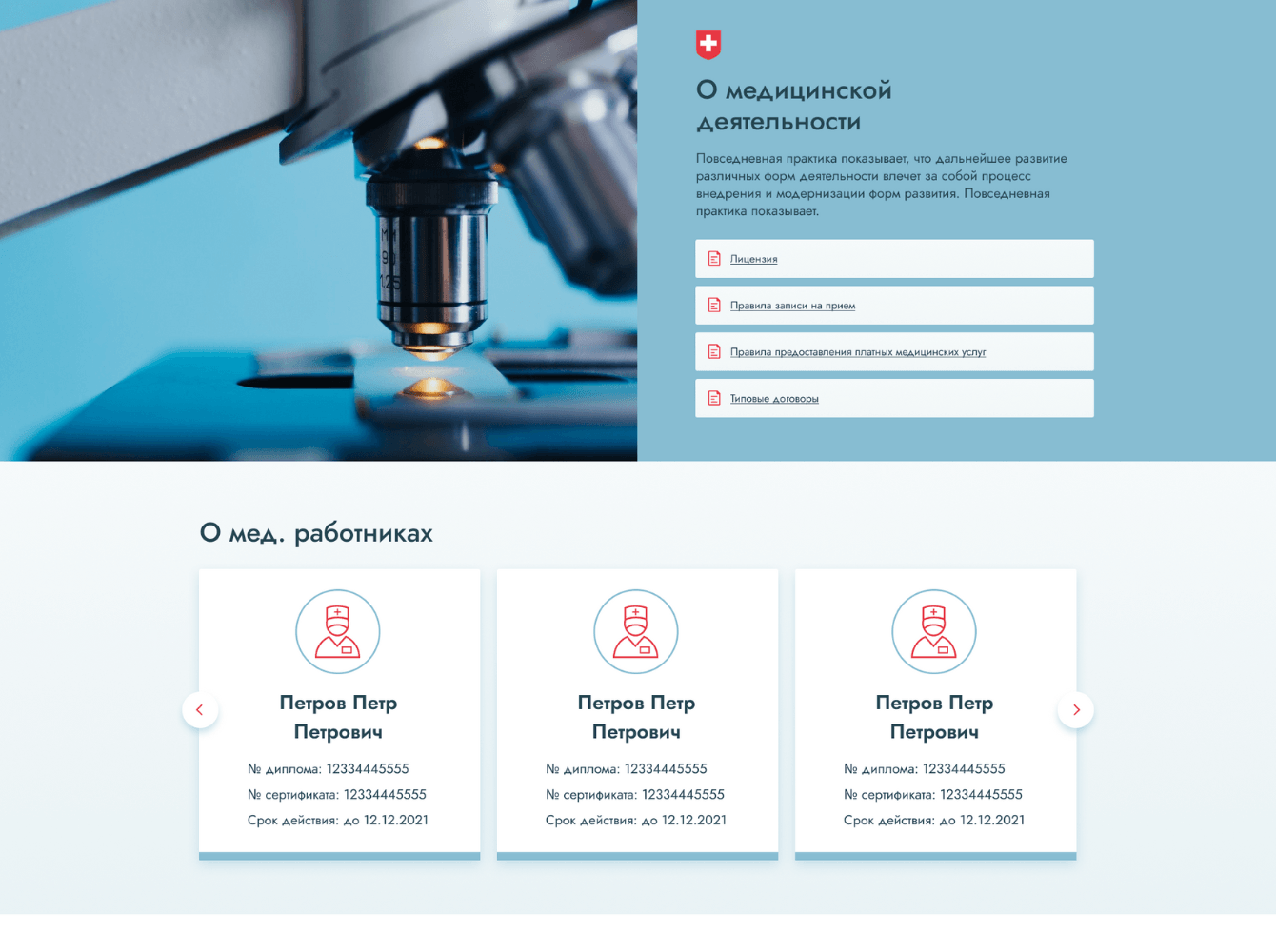 На данный момент это простой лендинг, который в будущем легко превратить в многостраничный сайт, добавив информационные материалы о медицинских услугах, акции, новости, блог и др. Такое наполнение помогло бы SEO-продвижению сайта.