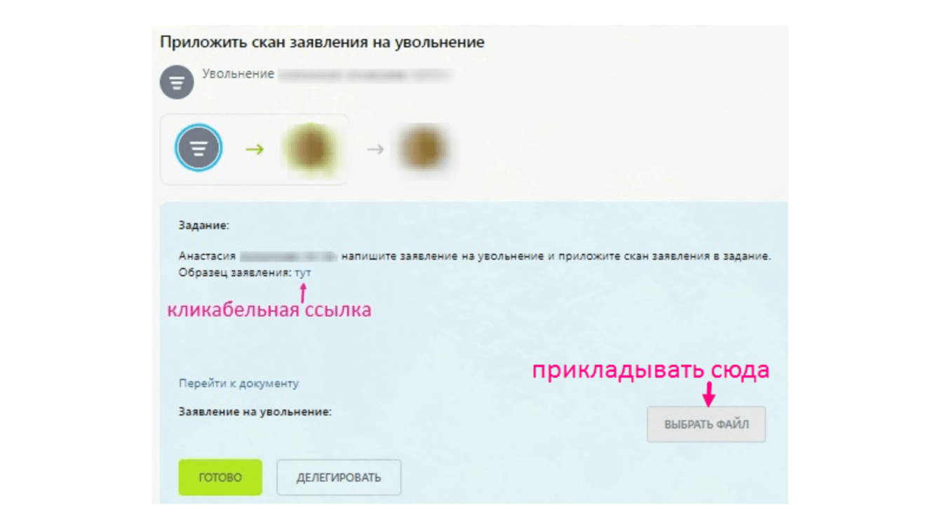 5. Ясно на каком этапе сейчас находится увольнение сотрудника (запуск процесса, согласование у директора и т.д). Карточка сама движется по этапам.