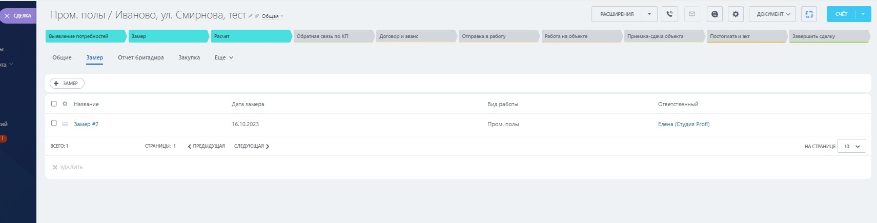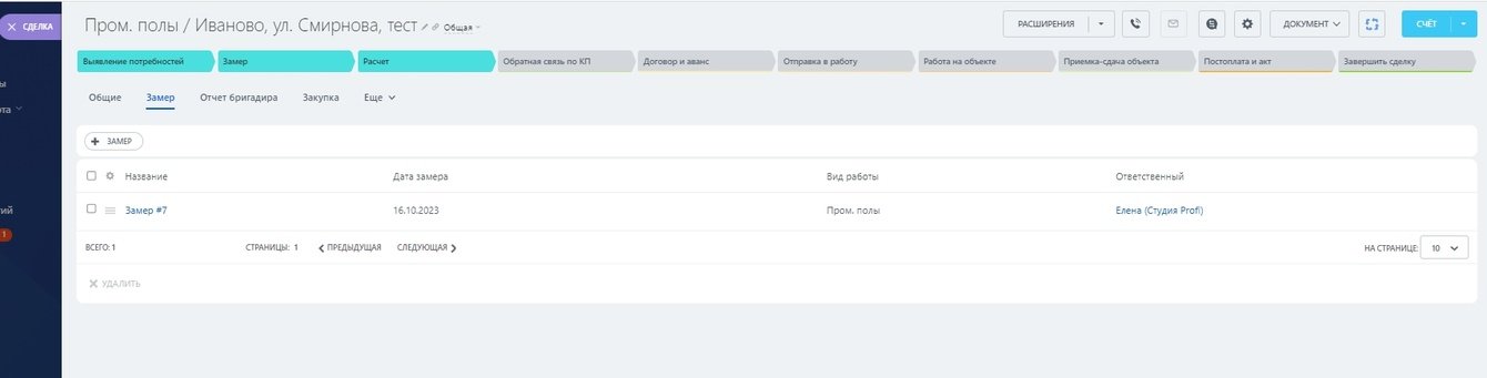1. Настроить этапы ведения проектов (заказов), начиная с замера и заканчивая получением полной оплаты и закрывающих документов.