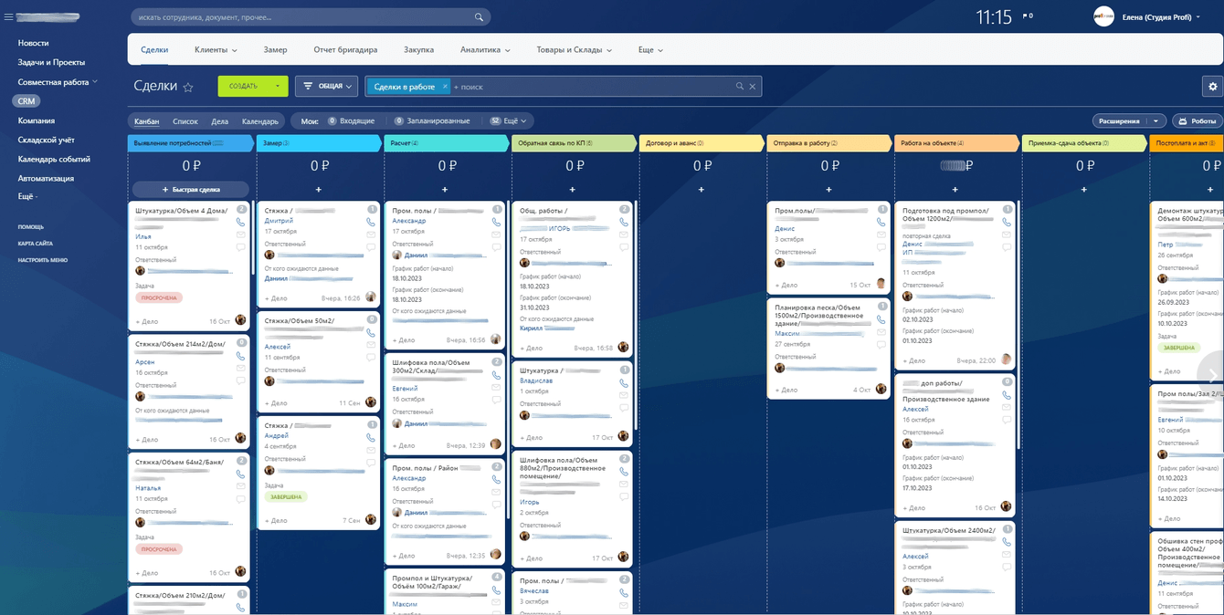 1. После внедрения Битрикс24 менеджеры ведут свои заказы по воронке, начиная от замера и заканчивая получением полной оплаты и актов – заказы не теряются, имеется полная картина.