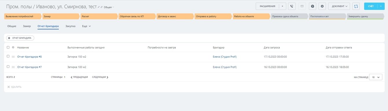 Какие работы выполнила ваша бригада в течение дня? Теперь это можно просматривать прямо внутри заказа.