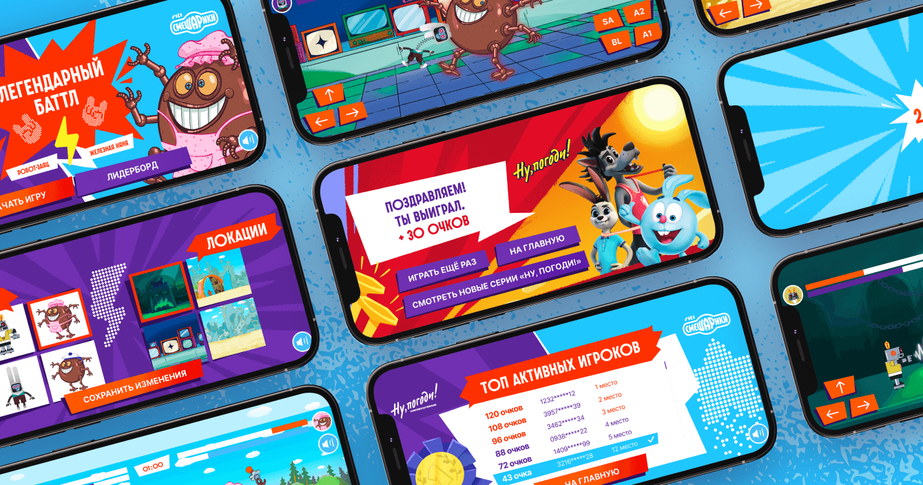 К нам обратились с неожиданной и вдохновляющей задачей два флагмана анимации, «Союзмультфильм» и группа компаний «Рики». Создатели «Ну, погоди!» и «Смешариков», отложив в сторону соперничество, объединились в творческий союз. Креативная идея для коллаборации уже была придумана, и нашей студии предстояло доработать концепцию, подготовить дизайн-макеты и разработать саму игру, которая обещала стать хитом.