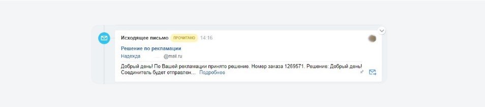 ► В карточке заявки содержится вся информация, в одном месте. К ней прикрепляются только письма, относящиеся к рекламации