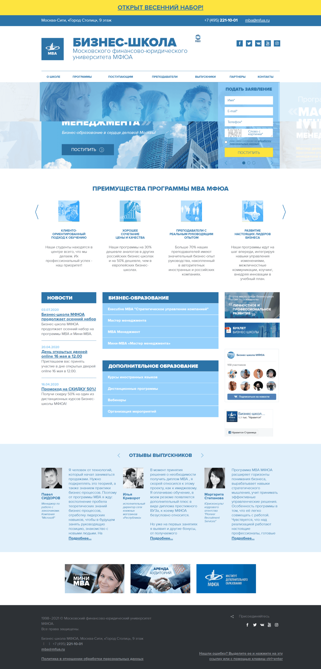 Современный и полнофункциональный сайт Бизнес-школы Московского финансово-юридического университета МФЮА.