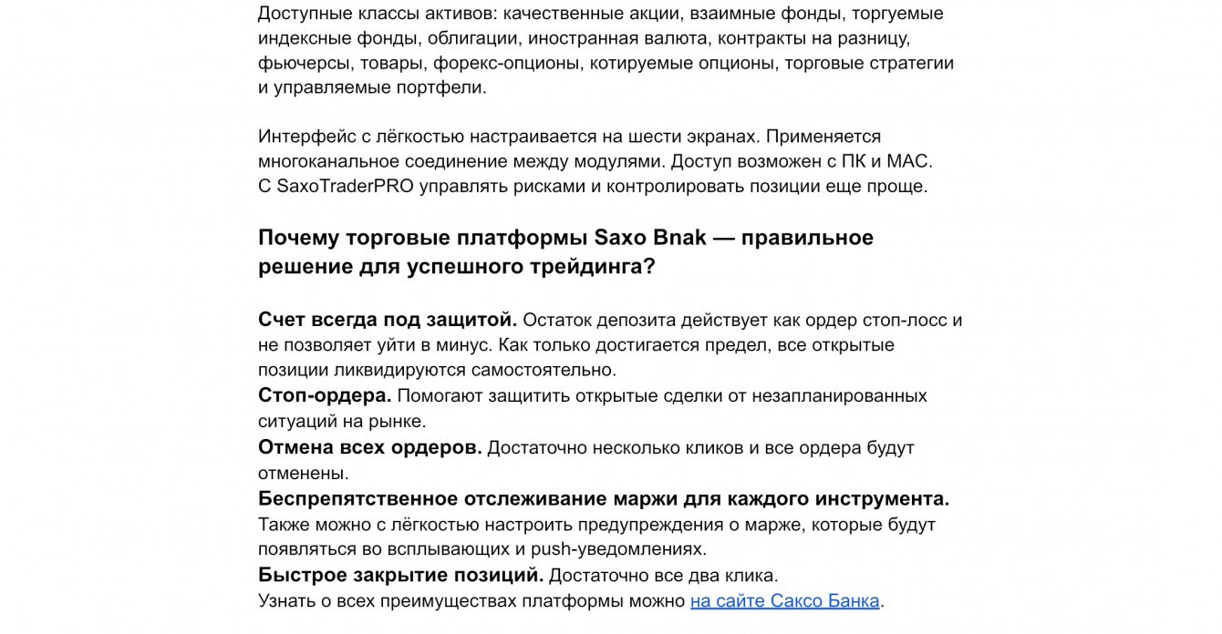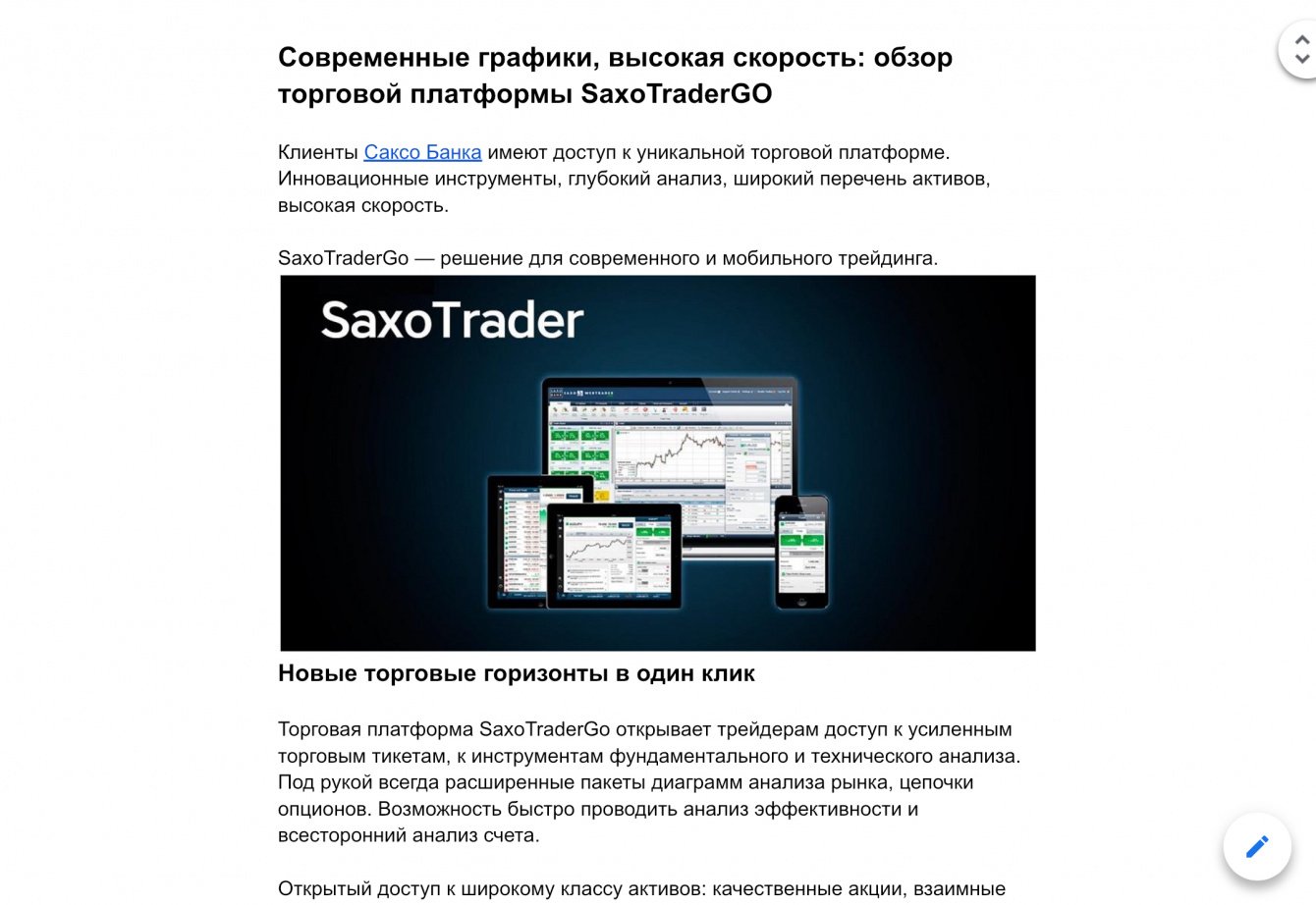 ✔️ Задача: сделать коммерческий обзор торговой платформы SaxoTraderGo. Количество знаков б.п — 2500. Уникальность — 100%.