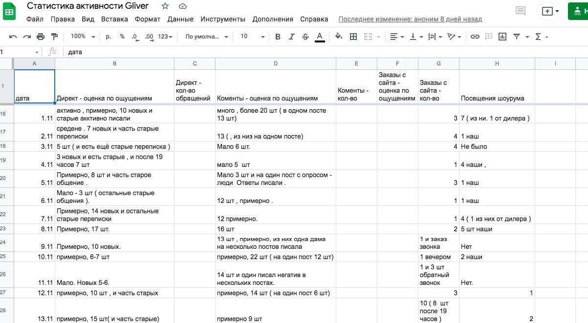 Комментирует таргетолог проекта Александр Володин: "В связи с длинным сроком принятия решения, я снимаю промежуточные метрики (не продажи) — количество обращений считается каждый день. Также я указываю, какие изменения в РК я вношу, и потом смотрю по результатам, недели, допустим, повлияло ли это на их количество. Если внесенное изменение дало их увеличение, то оно остается в строю. И только после 3-5 месяцев я смотрю, а дало ли оно продажи (с помощью оффлайн конверсий или api conversion (на стадии внедрения), и принимаю решение: отключать ли эту связку или нет. Так, внося небольшие изменения и контролируя их, я и масштабировался.