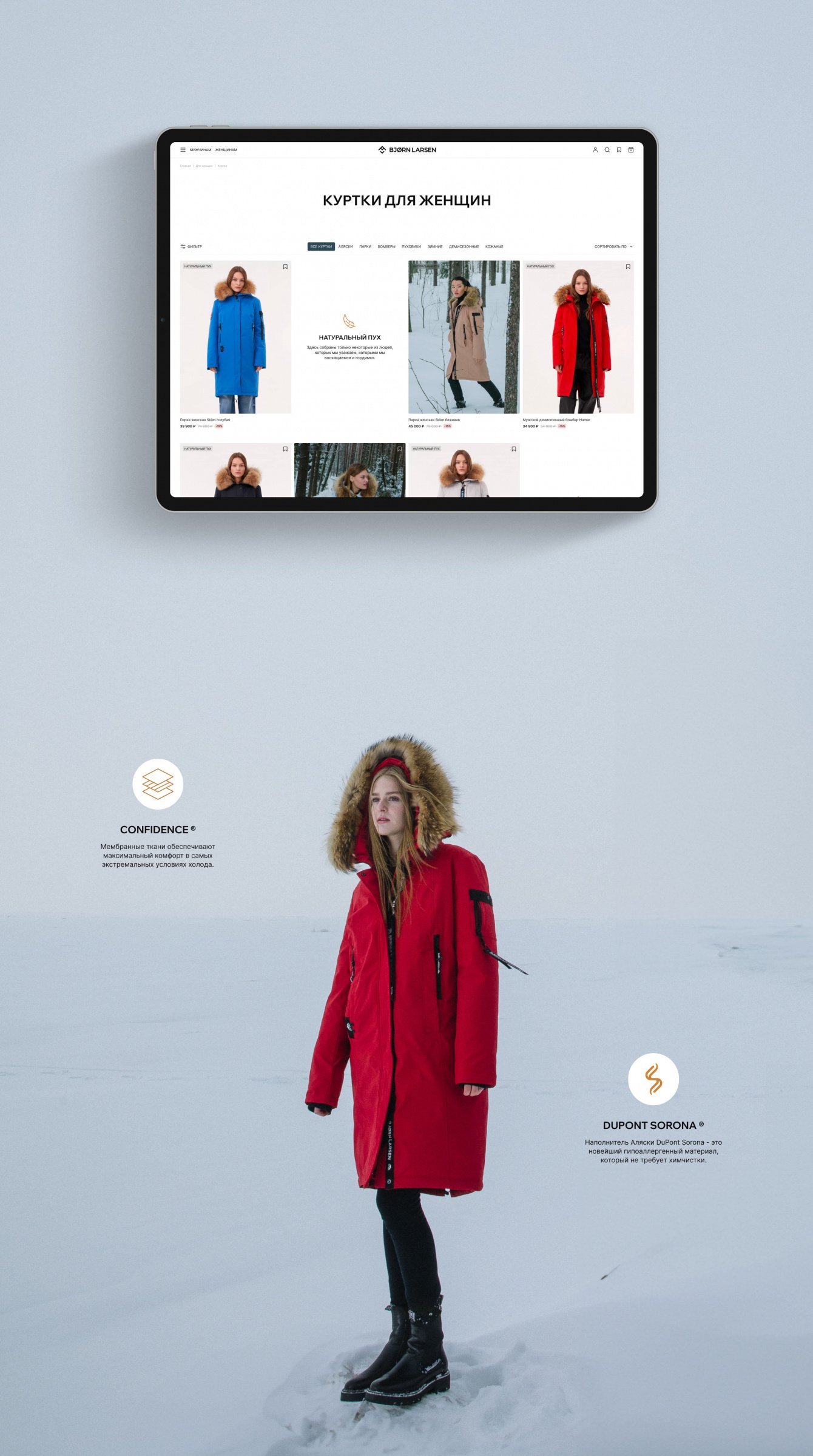 В дизайне присутствуют норвежские мотивы, например, букву ø, используемую в крупных заголовках. Это ассоциирует бренд с севером, холодной Скандинавией и их теплой, технологичной зимней одеждой.
