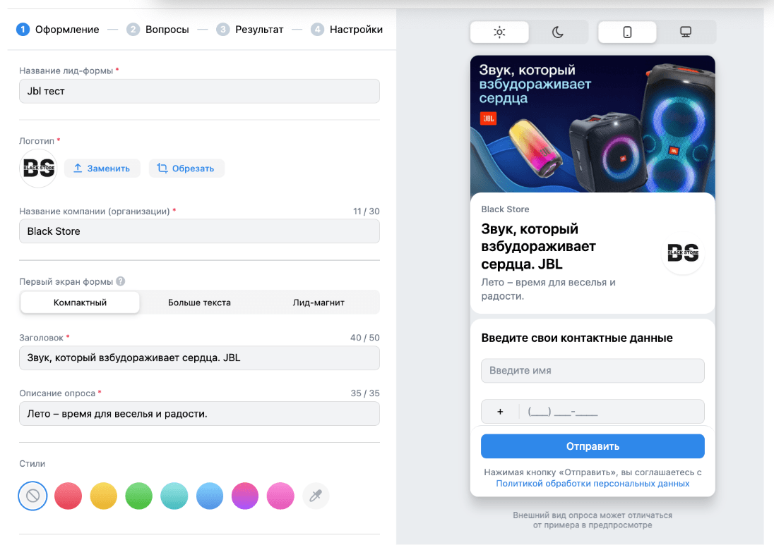 Такими вопросами были модель JBL- колонки и география доставки (спрашивать на старте много информации тоже не стоит, люди не будут оставлять подробные данные без конкретного диалога)