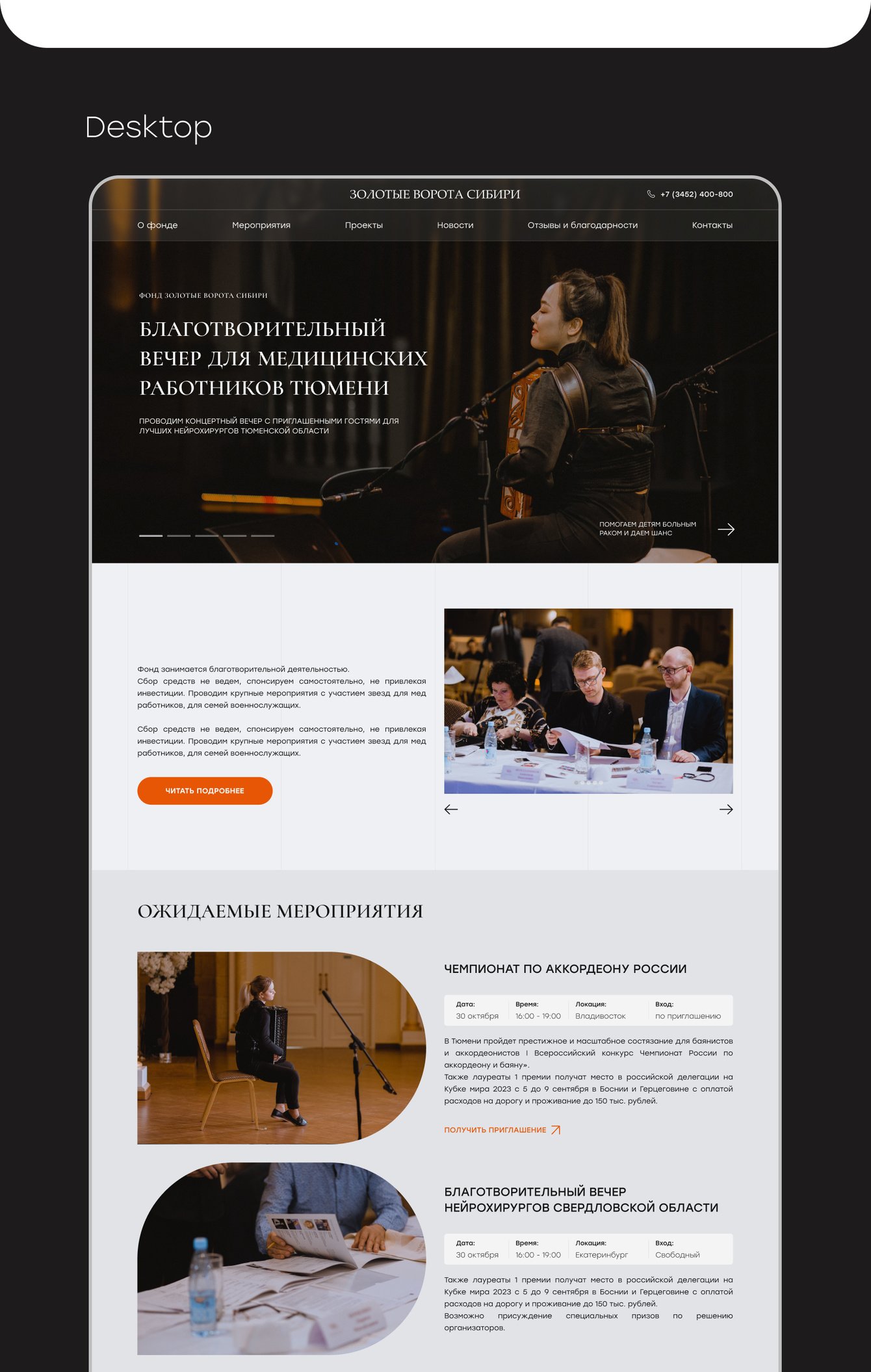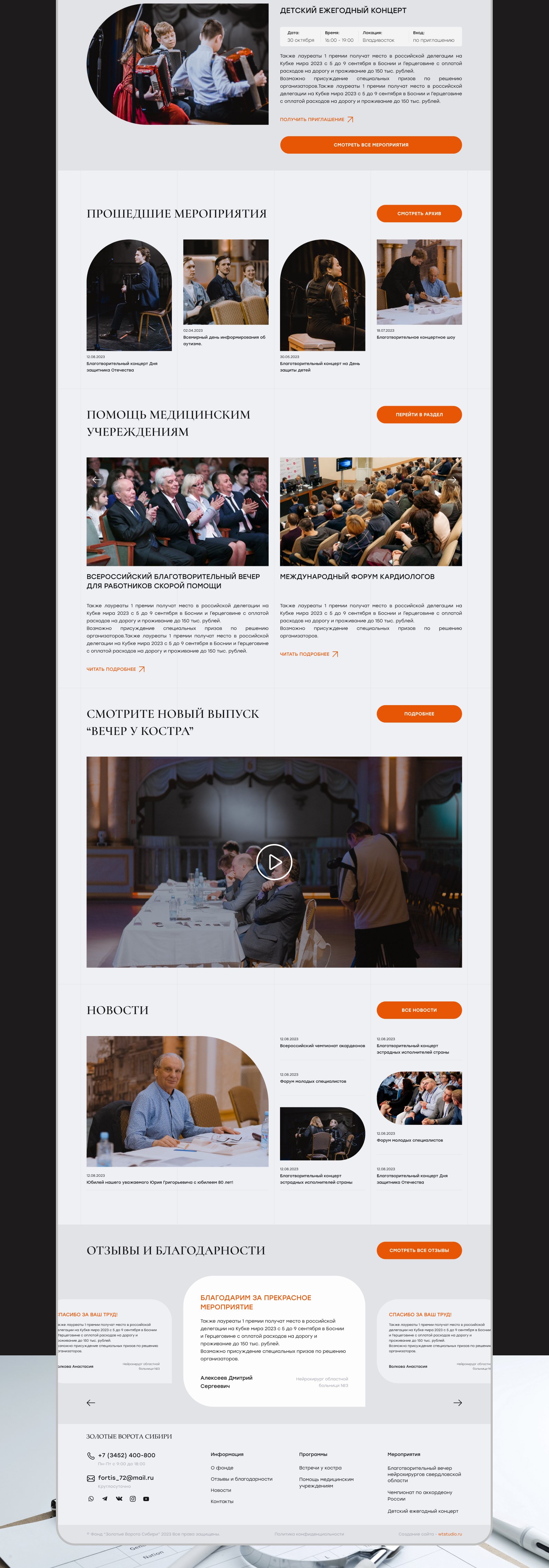 Разработка сайта для творческого благотворительного фонда Золотые Ворота Сибири