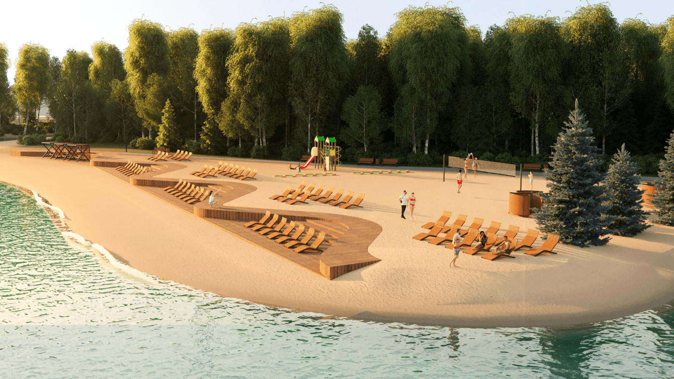 Разработка, моделирование и создание визуализацию пляжной зоны. В задачу входит разработка генплана, моделирование окружения и близлежащей застройки. Наполнение сцены МАФ и озеленение.