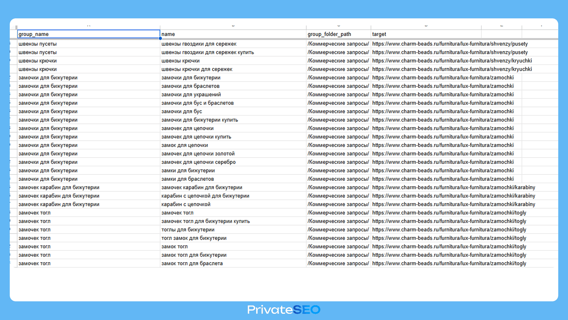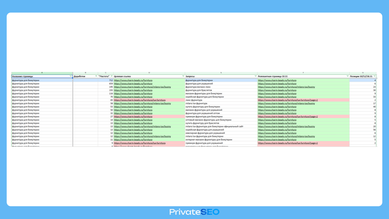 Для реализации стратегии мы подготовили техническую таблицу для разработки и оптимизации страниц на основе семантики. В рамках этого этапа: